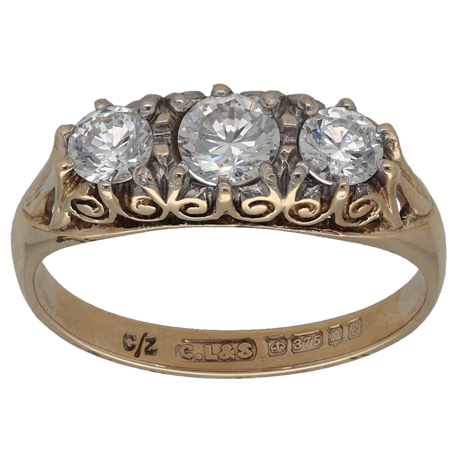 9ct Gold Cubic Zirconia Three Stone Ring Size M