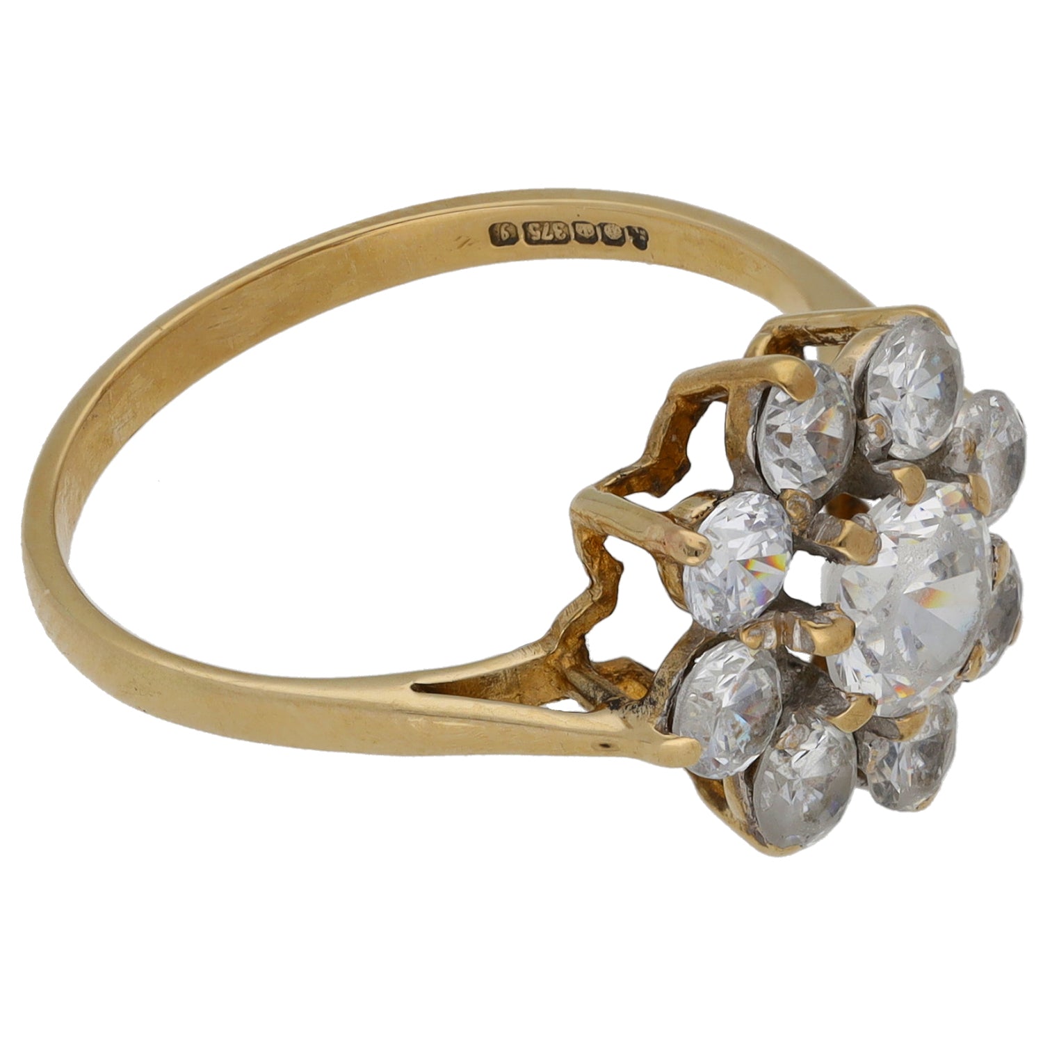 9ct Gold Cubic Zirconia Cluster Ring Size O