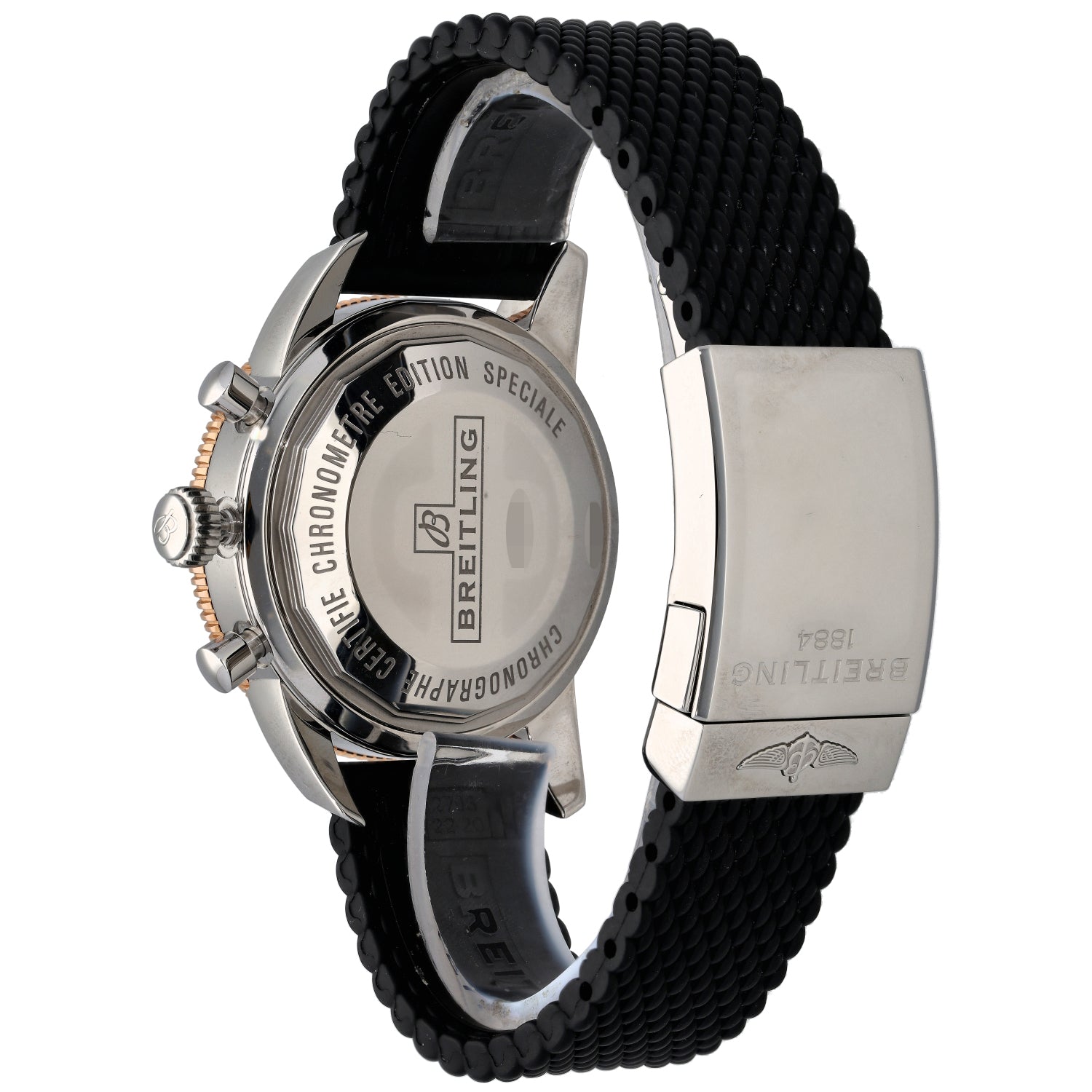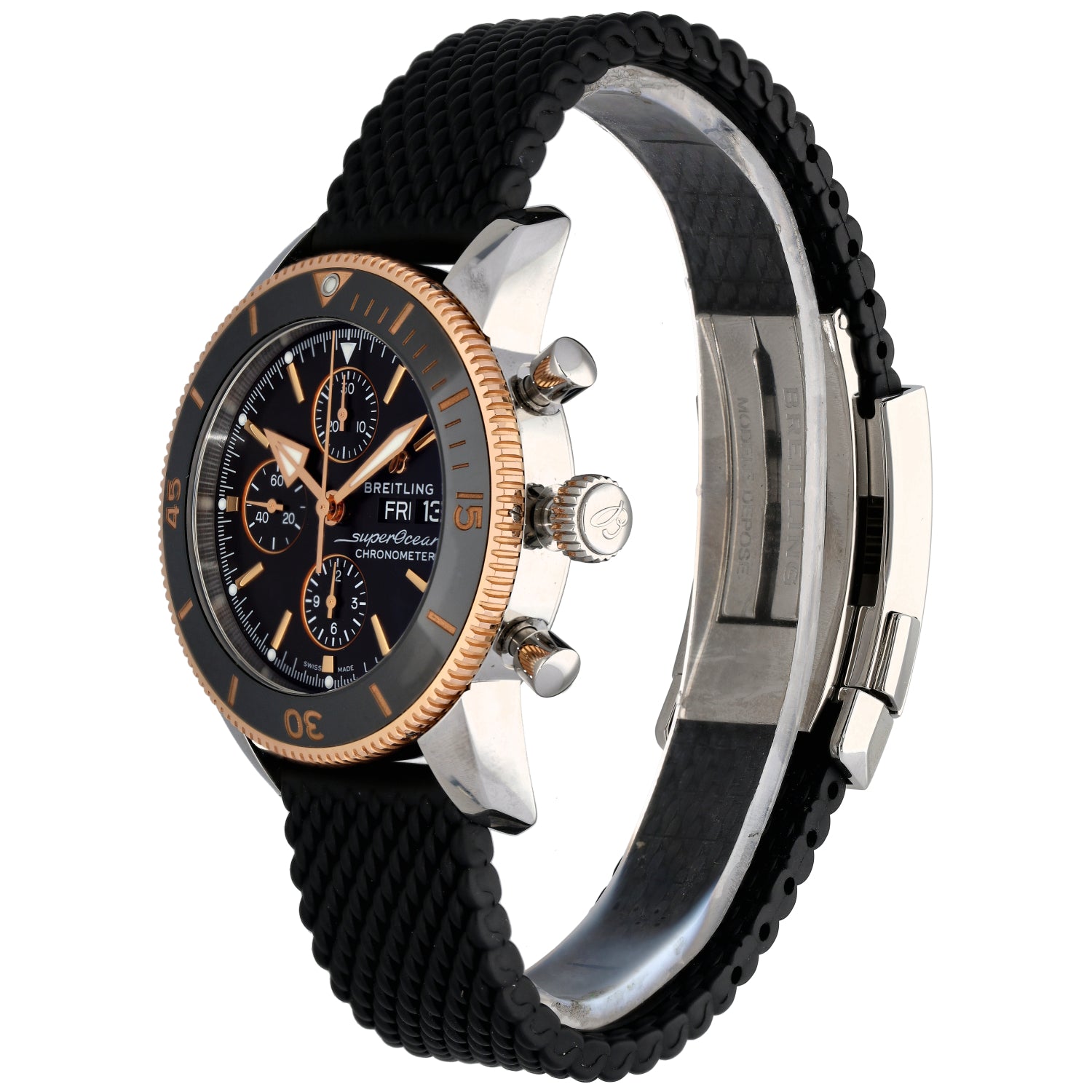 The Breitling Superocean is an intricate timepiece which was launched by Breitling back in the 1957, being a perfect addition to any watch collection. This pre-owned example is finished with a black dial inside a 44mm bi-colour case, which is fitted on an adjustable rubber bracelet. The watch is also powered by an Automatic movement and is water resistant up to 200 metres.