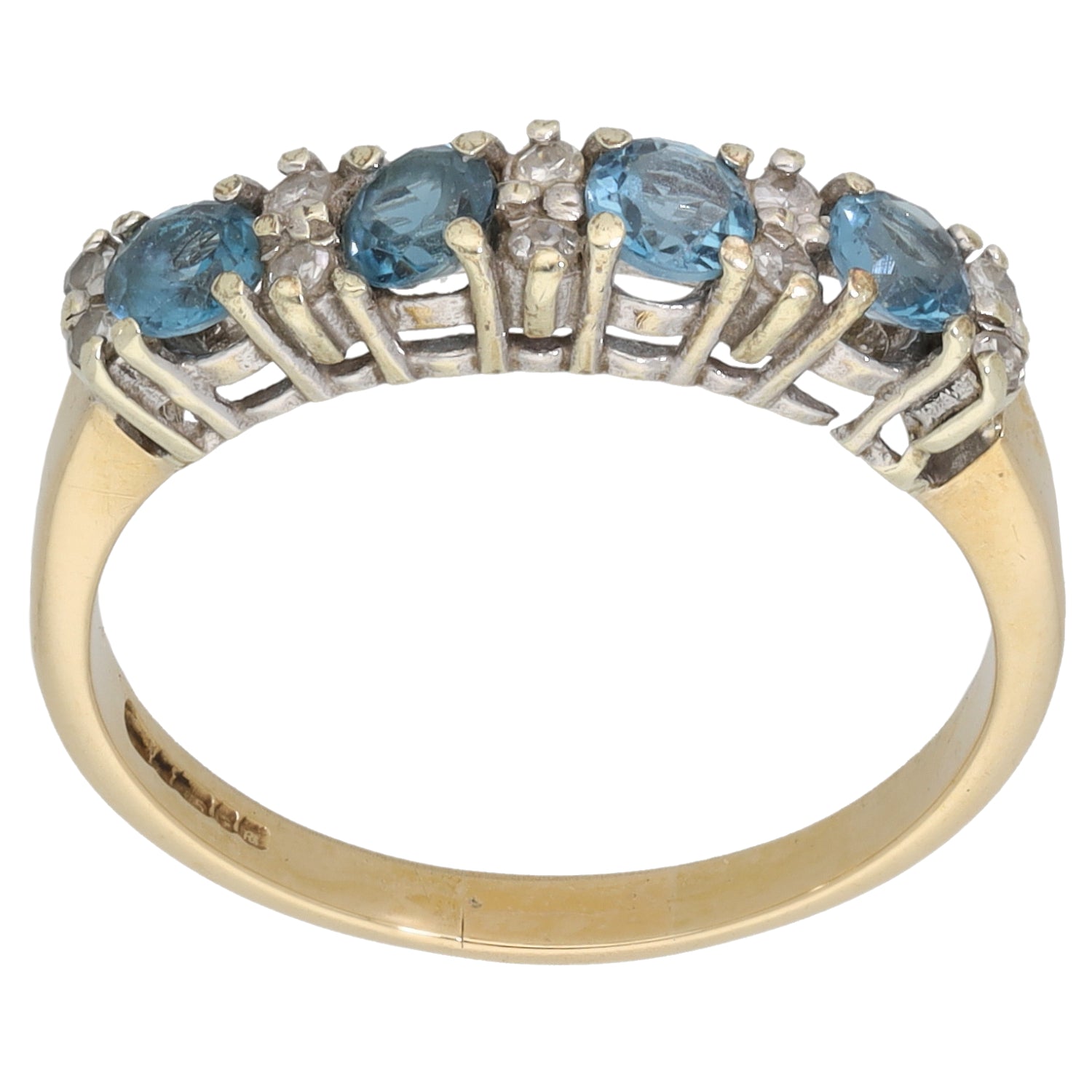 9ct Gold Topaz & 0.10ct Diamond Half Eternity Ring Size R