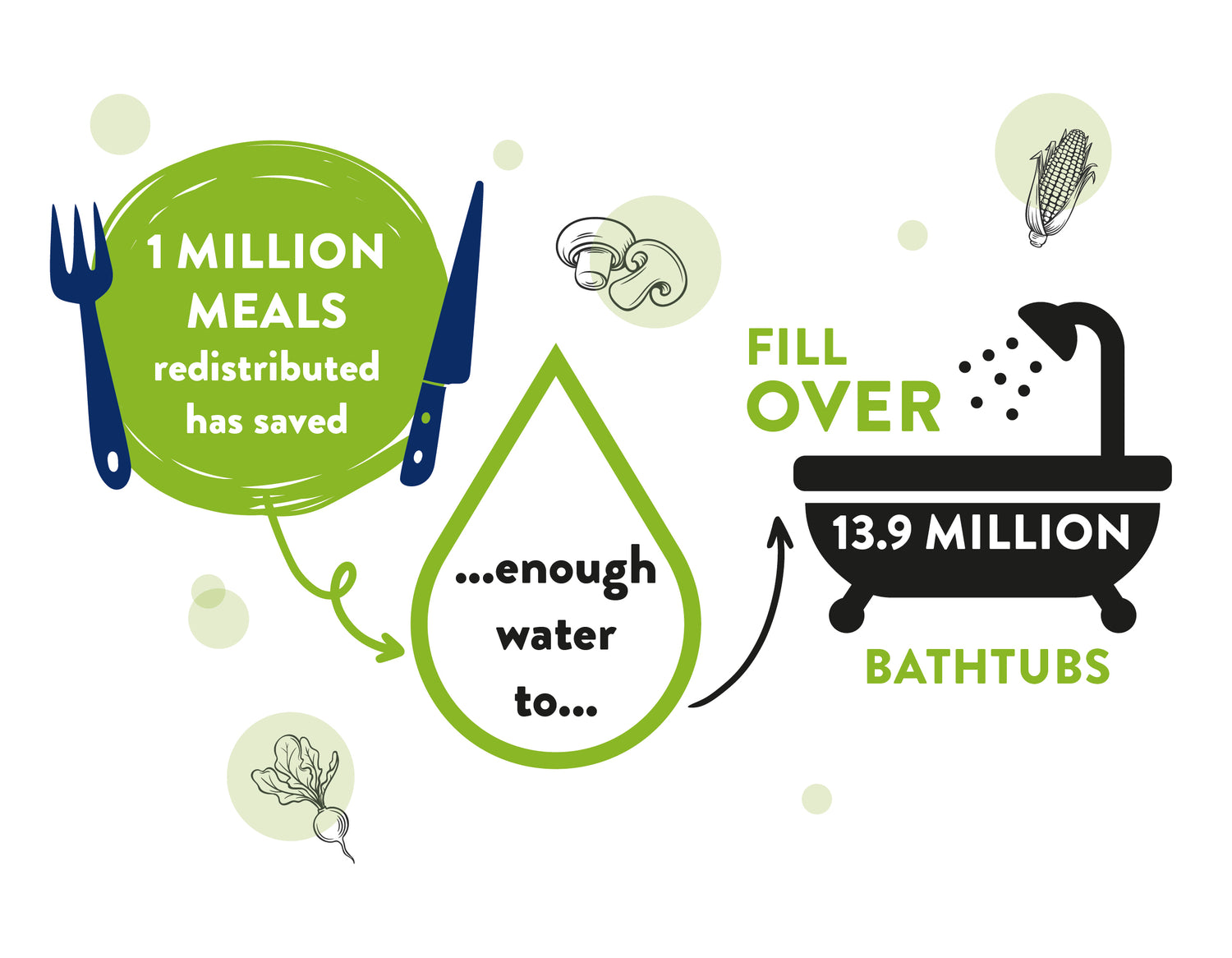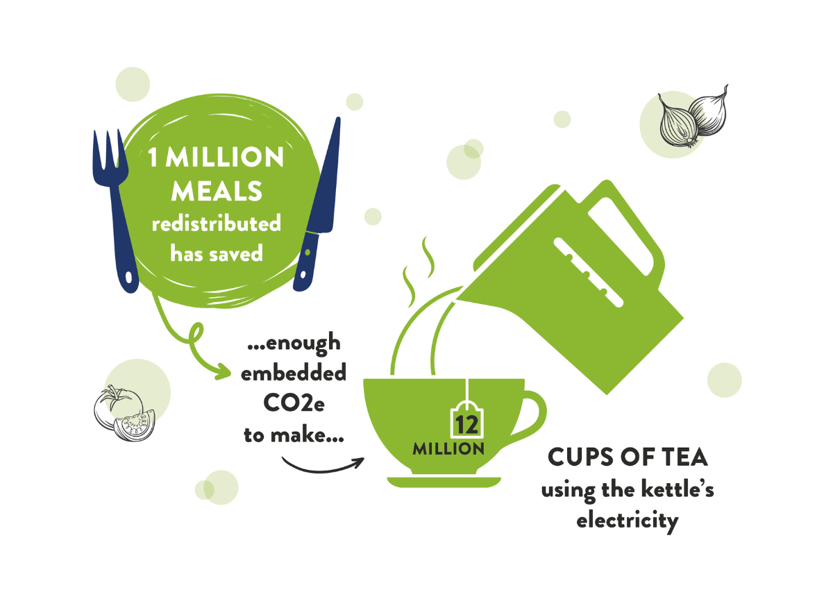 For every tonne of food FareShare redistributes, they prevent the waste of 2 tonnes of embedded CO2e emissions, and 2.66 million litres of embedded water.
