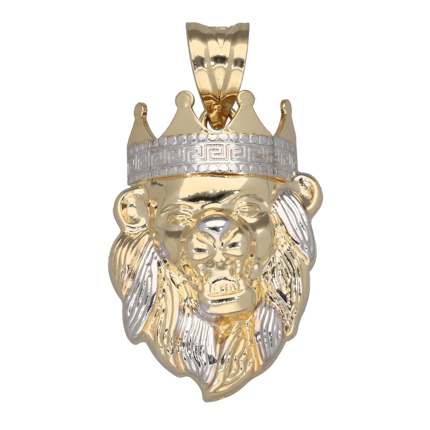 New 14ct Bi-Colour Gold Lion With Crown Pendant