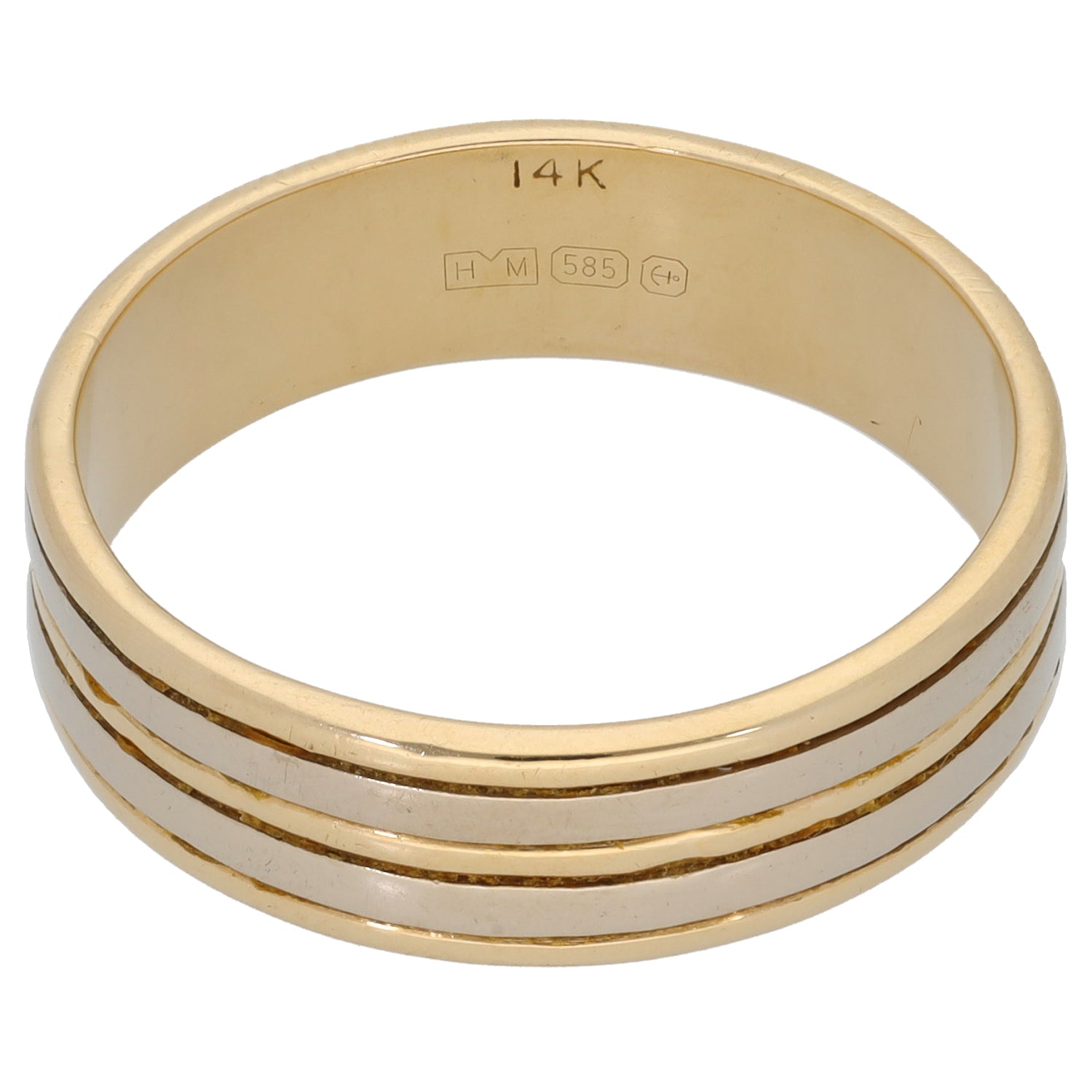 14ct Bicolour Gold Patterned Wedding Ring Size V