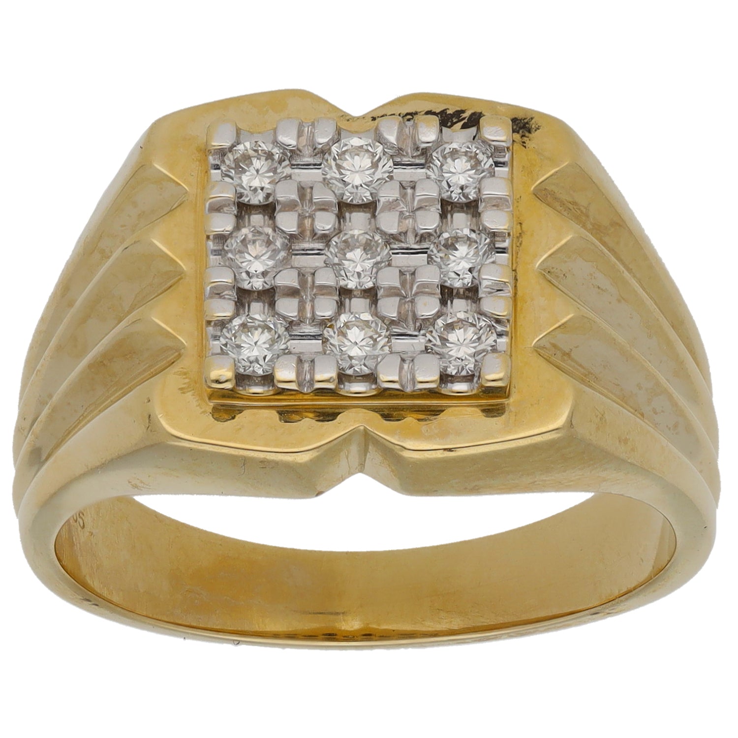 14ct Gold 0.27ct Diamond Patterned Signet Ring Size P