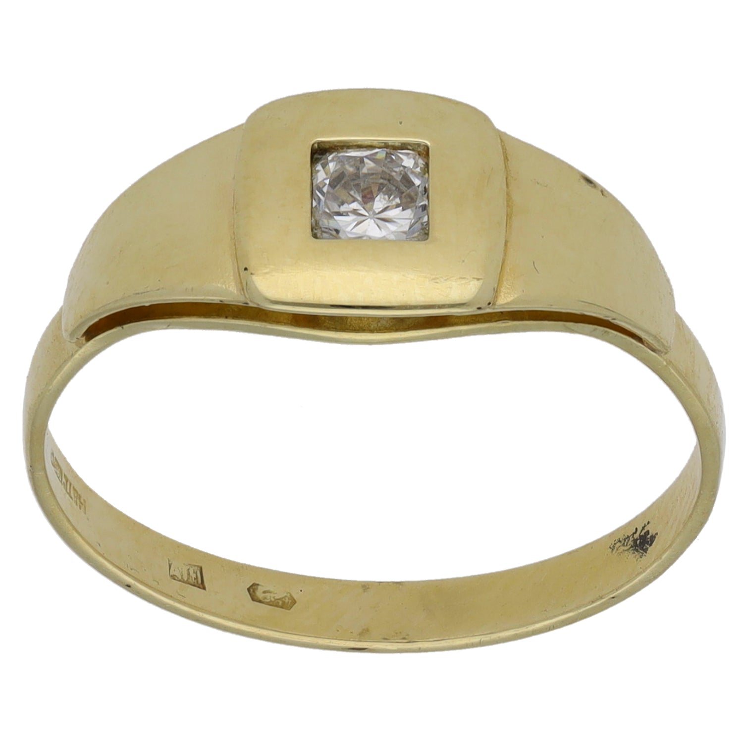 14ct Gold Cubic Zirconia Single Stone Ring Size M