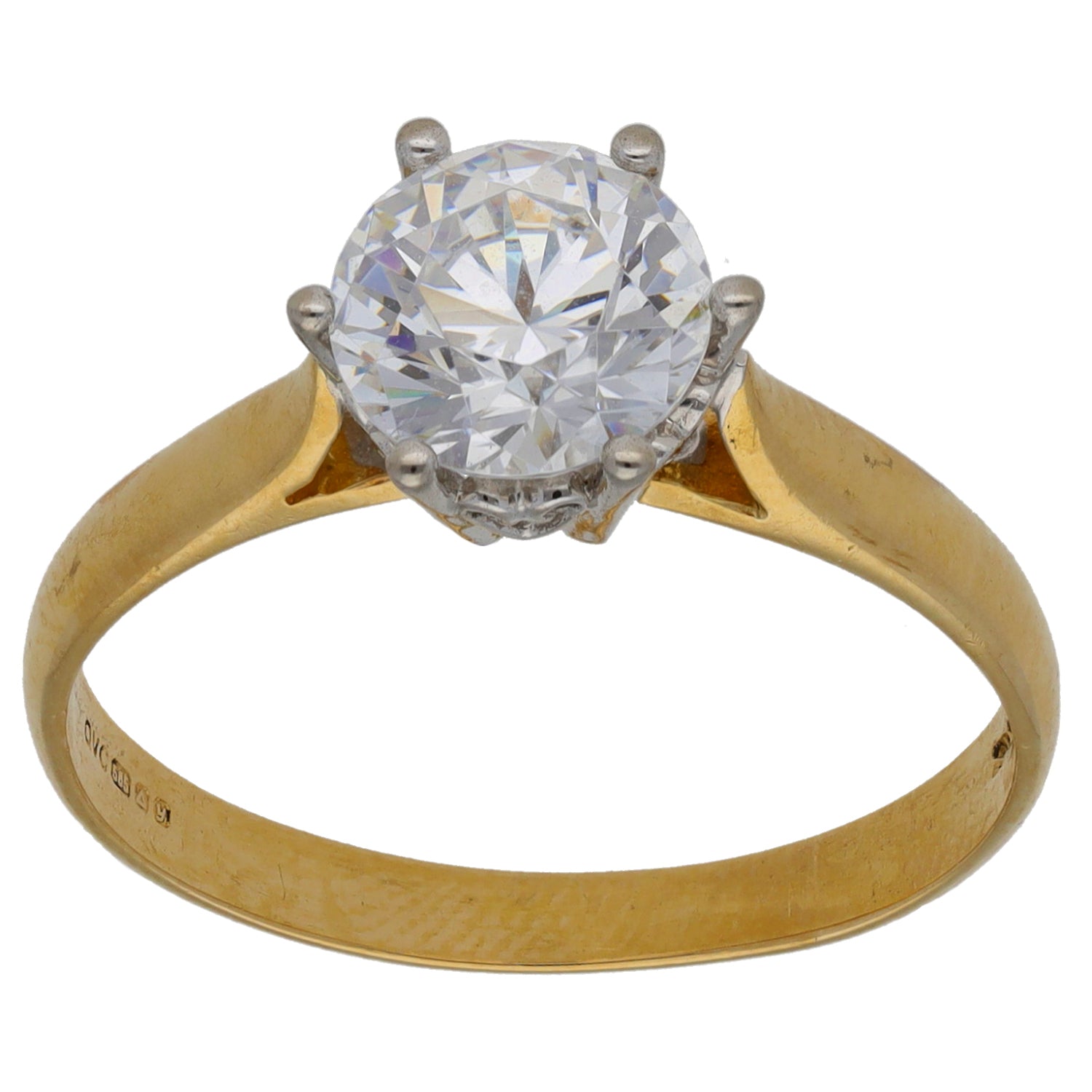 14ct Gold Cubic Zirconia Single Stone Ring Size R