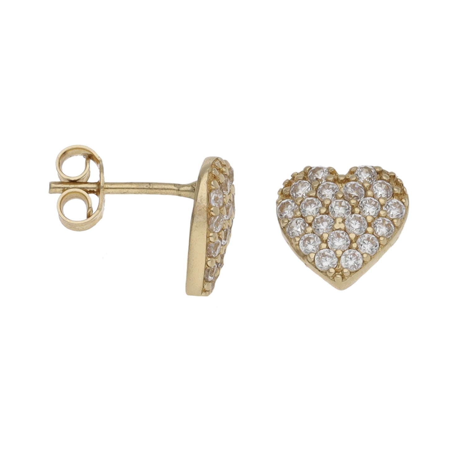 14ct Gold Cubic Zirconia Heart Stud Earrings