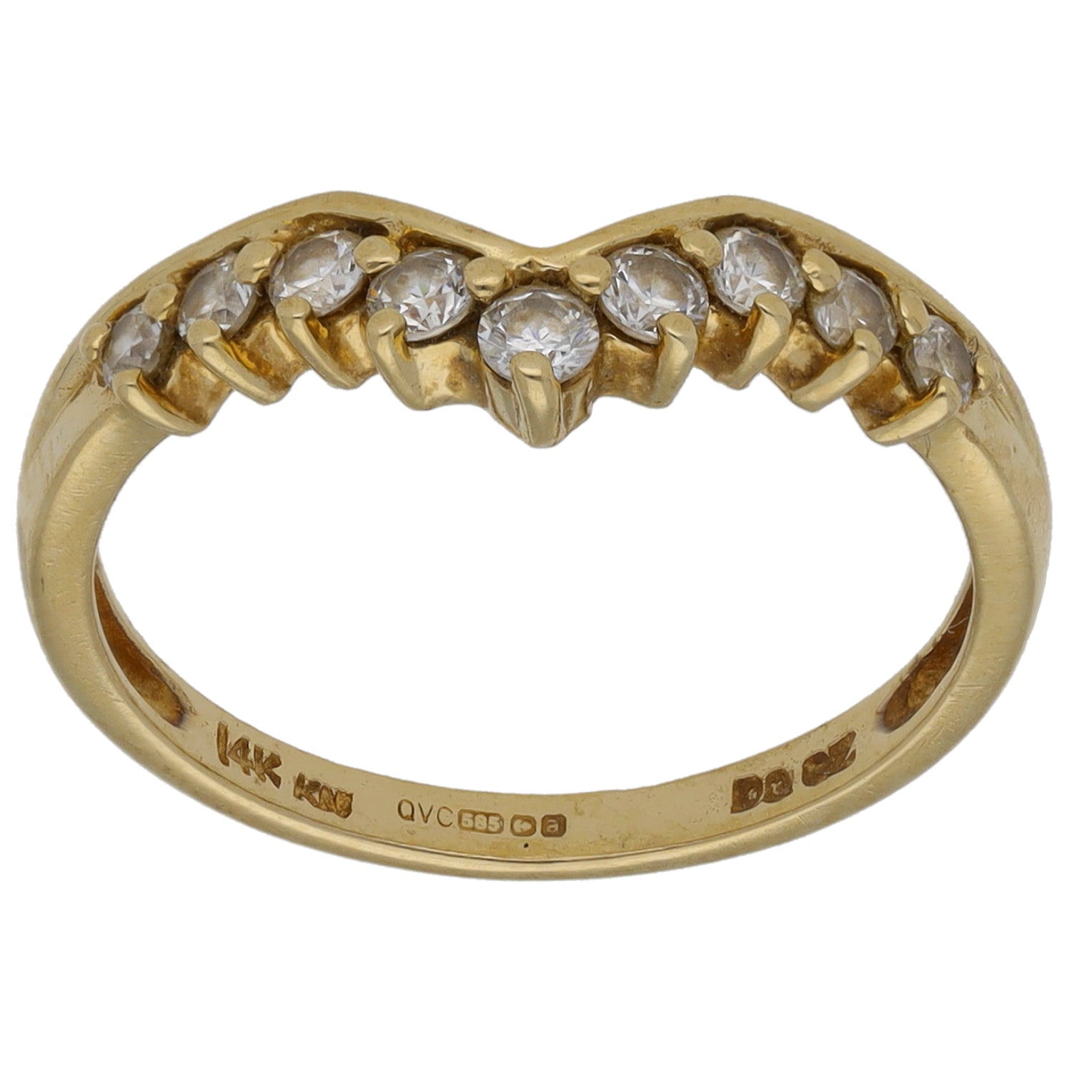 14ct Gold Cubic Zirconia Wishbone Ring Size K