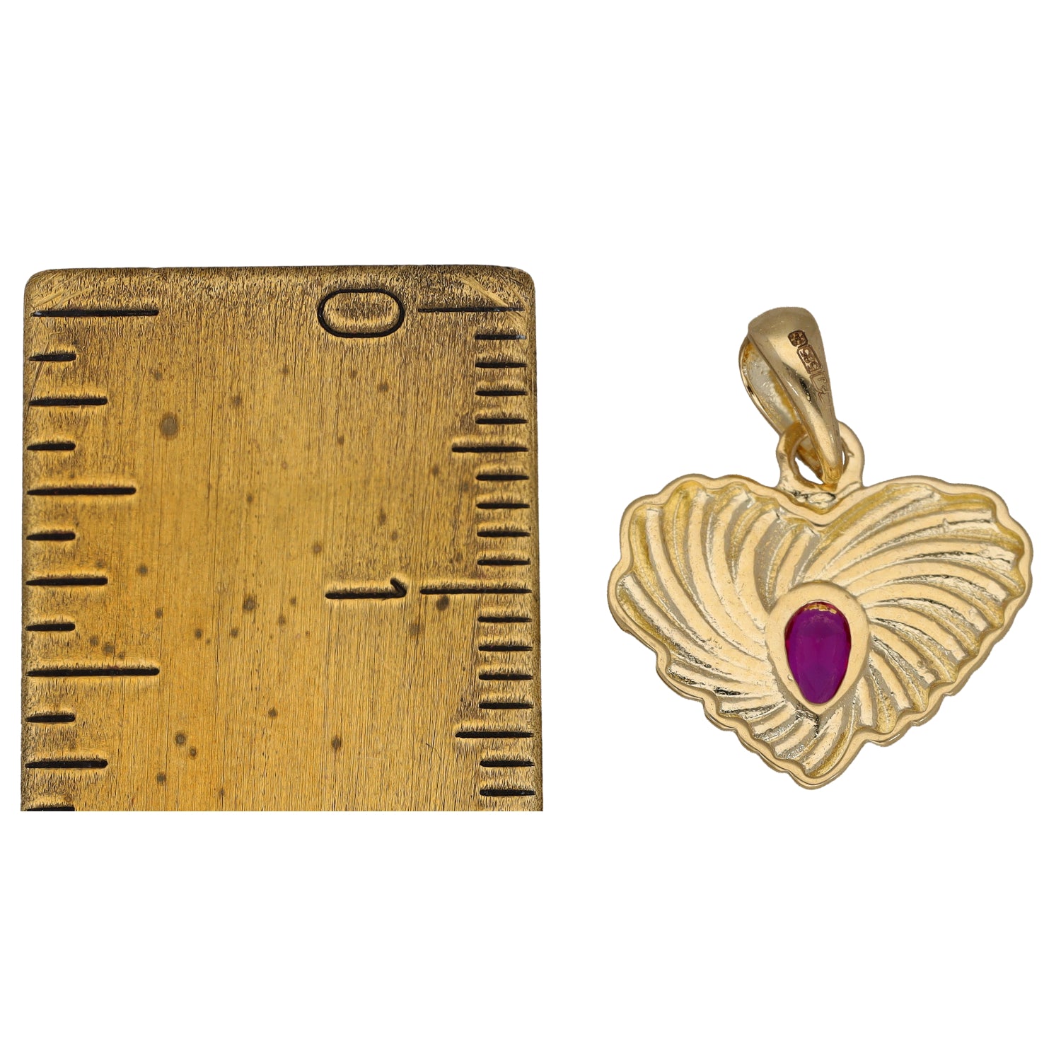 New 14ct Gold Red Stone Heart Pendant