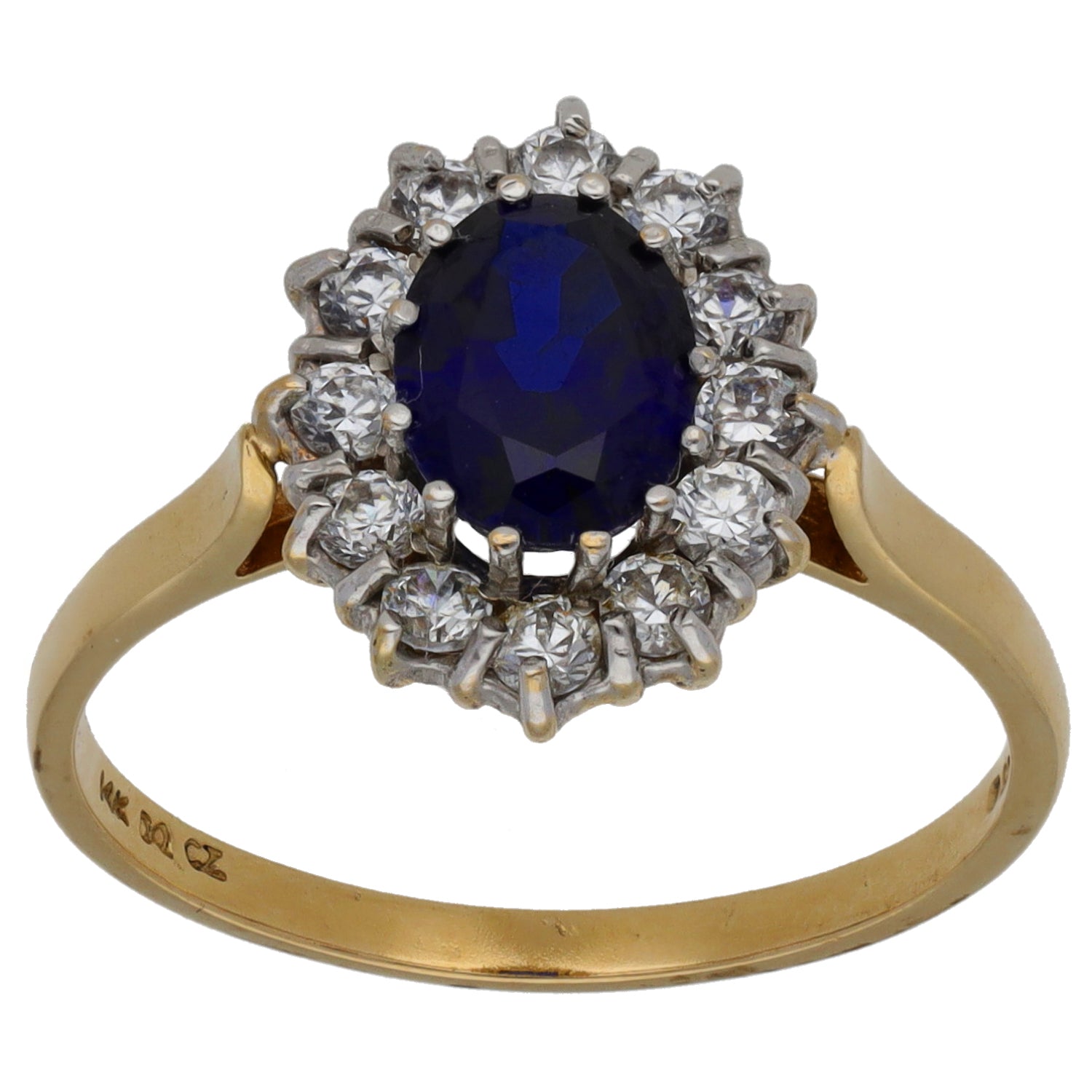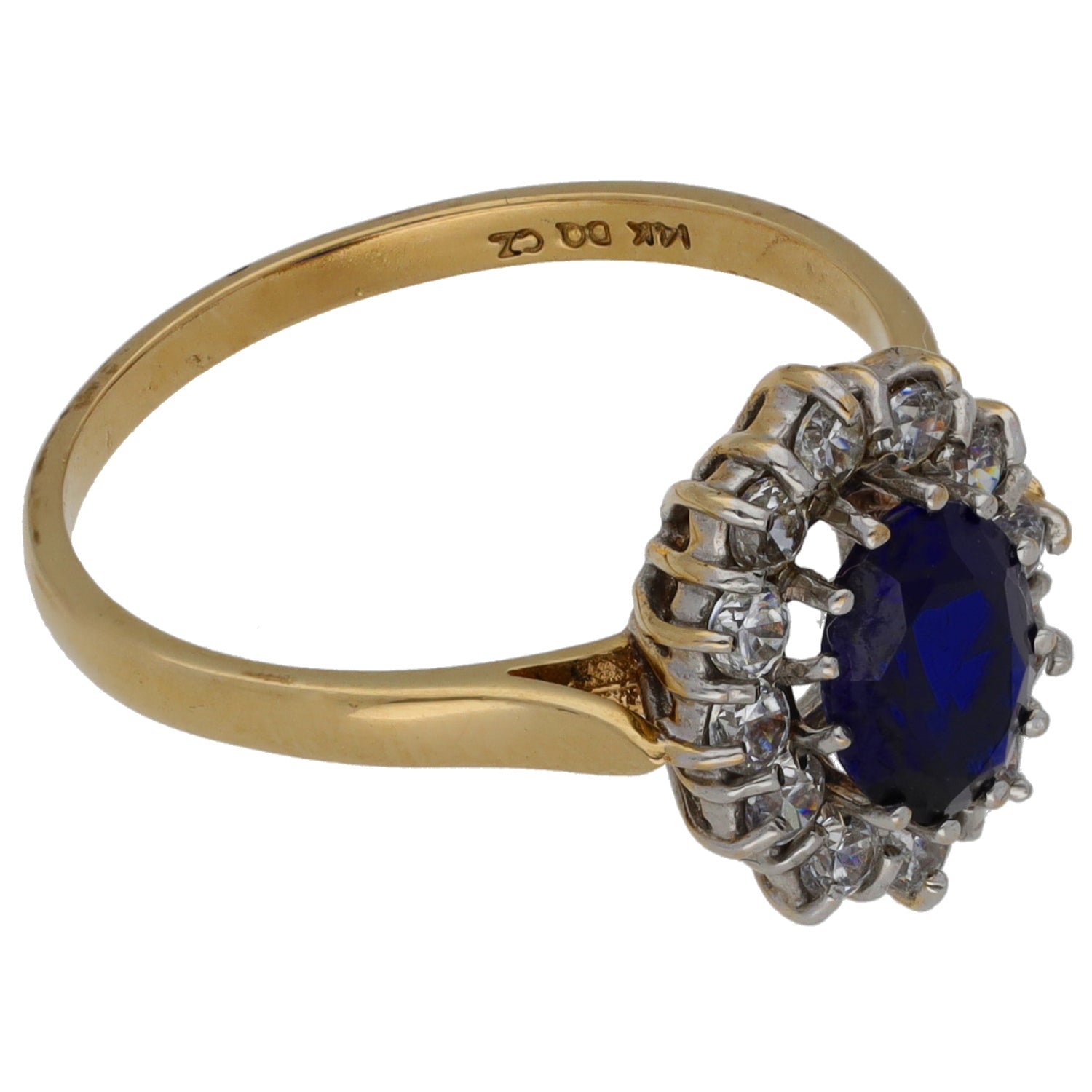 14ct Gold Man Made Sapphire & Cubic Zirconia Dress/Cocktail Ring Size S