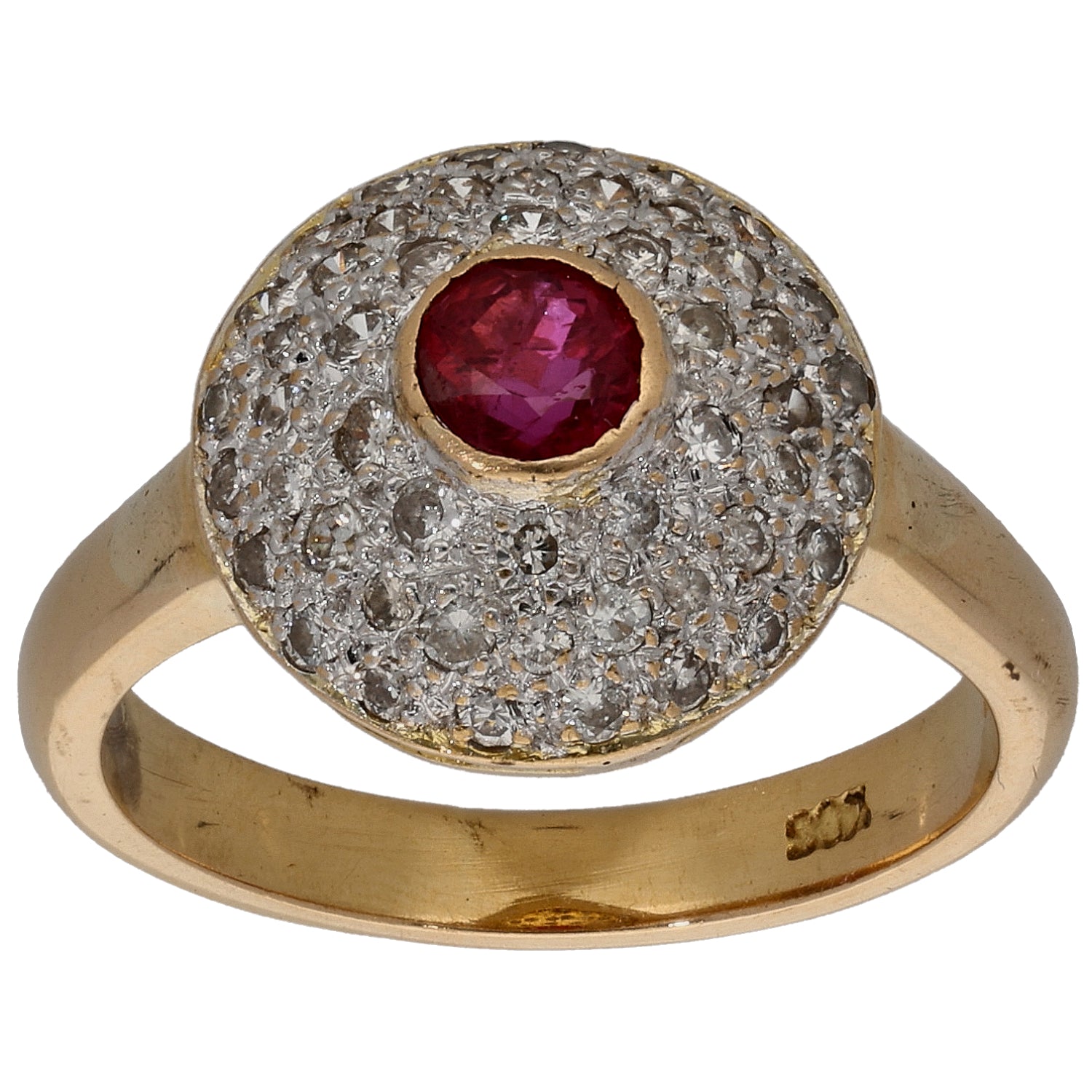 14ct Gold Ruby & 0.50ct Diamond Cluster Ring Size L