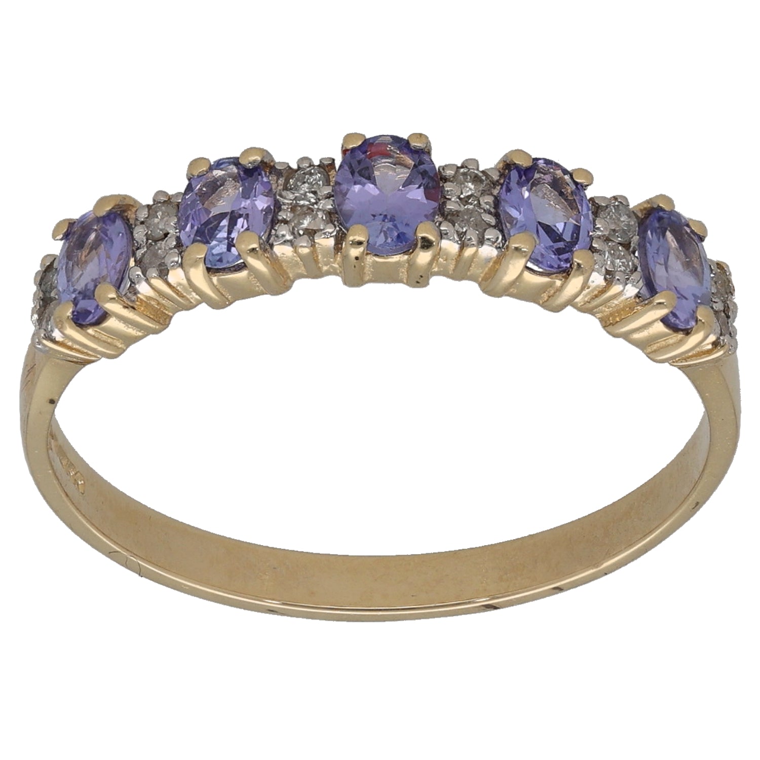 14ct Gold Tanzanite & 0.06ct Diamond Half Eternity Ring Size T