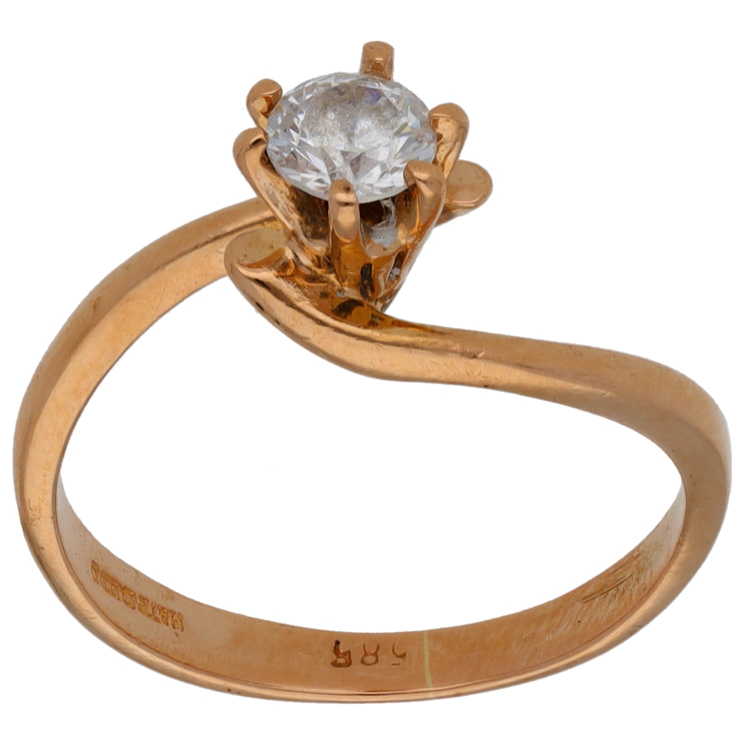 14ct Rose Gold Cubic Zirconia Single Stone Ring Size M