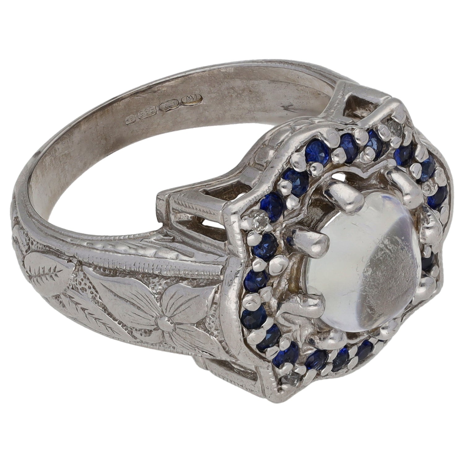 14ct White Gold Moonstone & Sapphire Dress/Cocktail Ring Size P