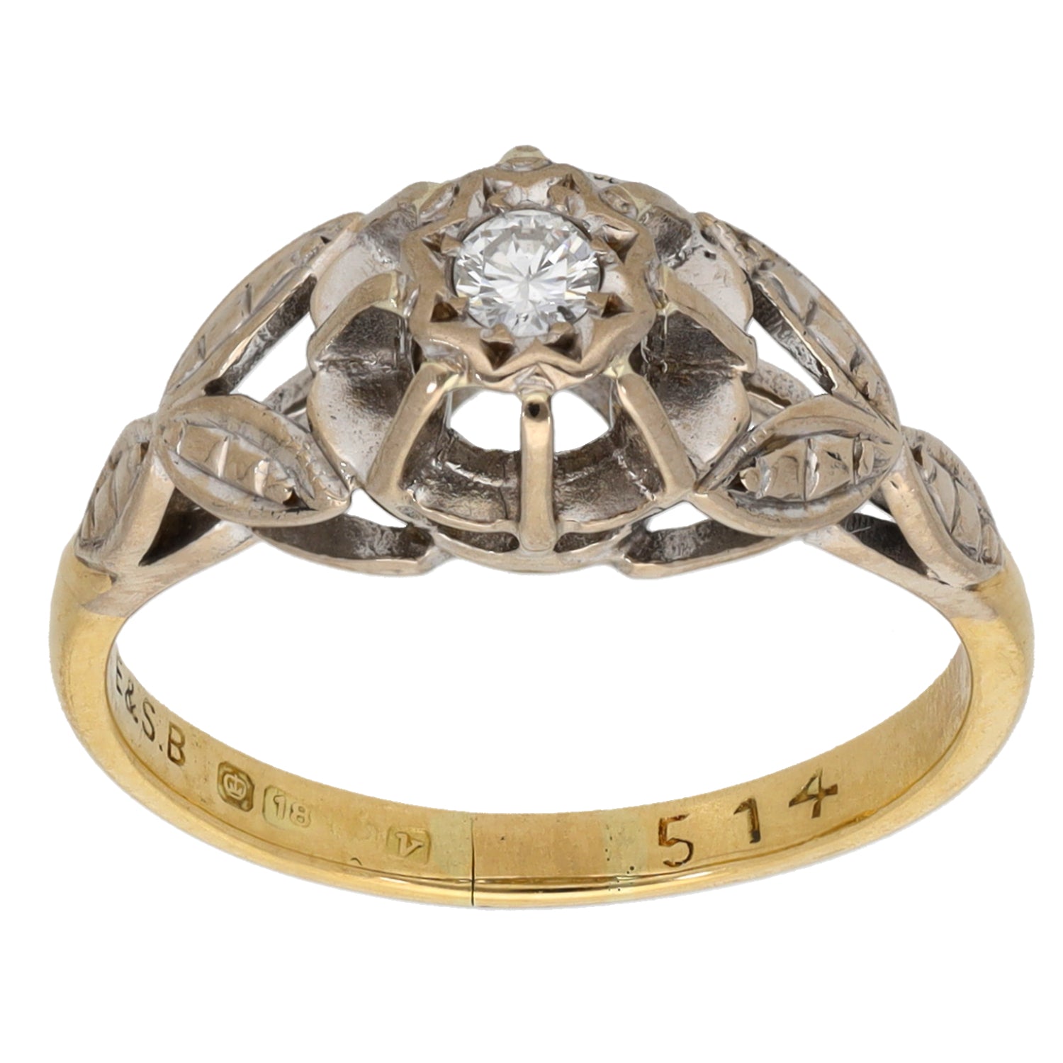 18ct Bi-Colour Gold 0.07ct Diamond Solitaire Ring Size K