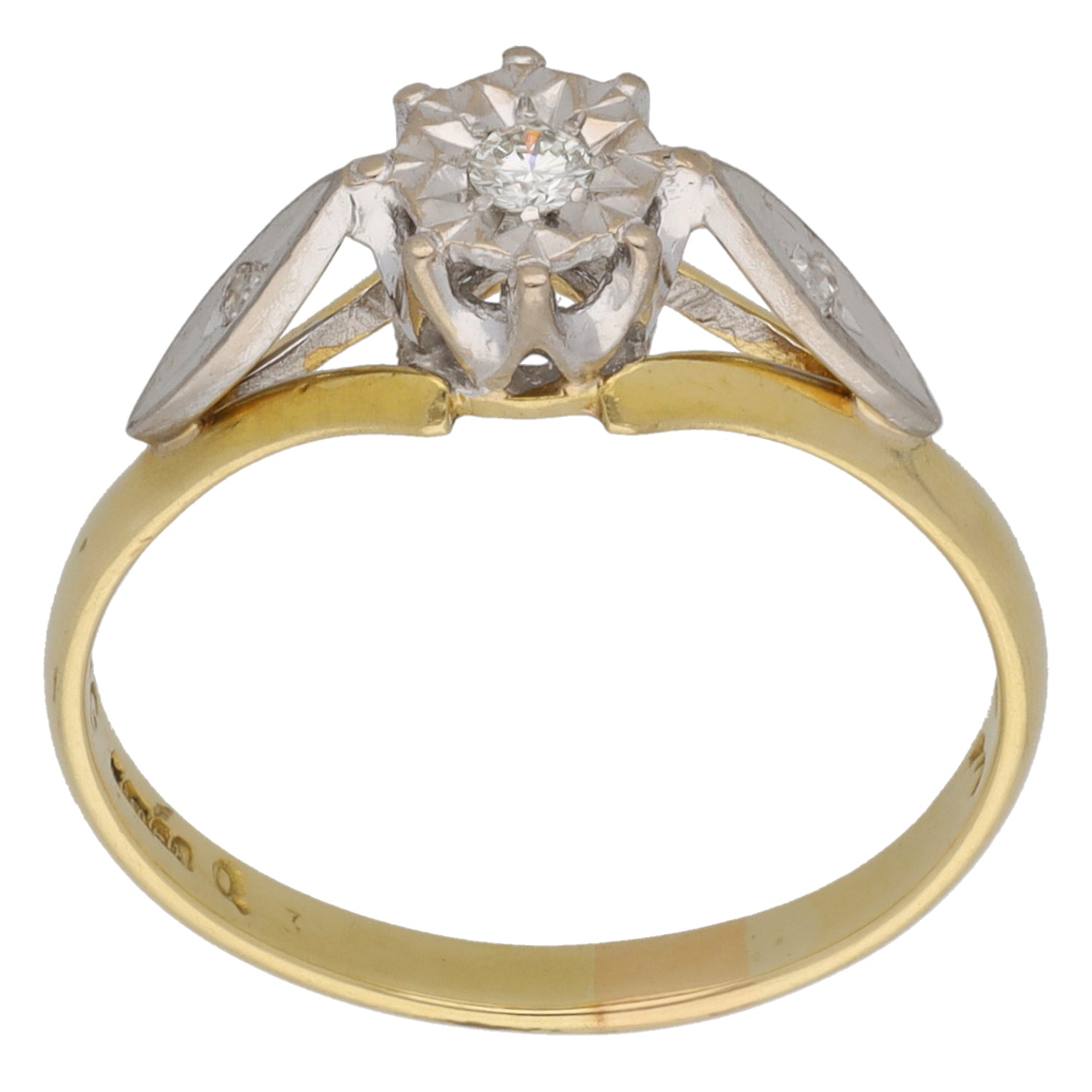 18ct Bi-Colour Gold 0.12ct Diamond Solitaire Ring With Accent Stones Size Q