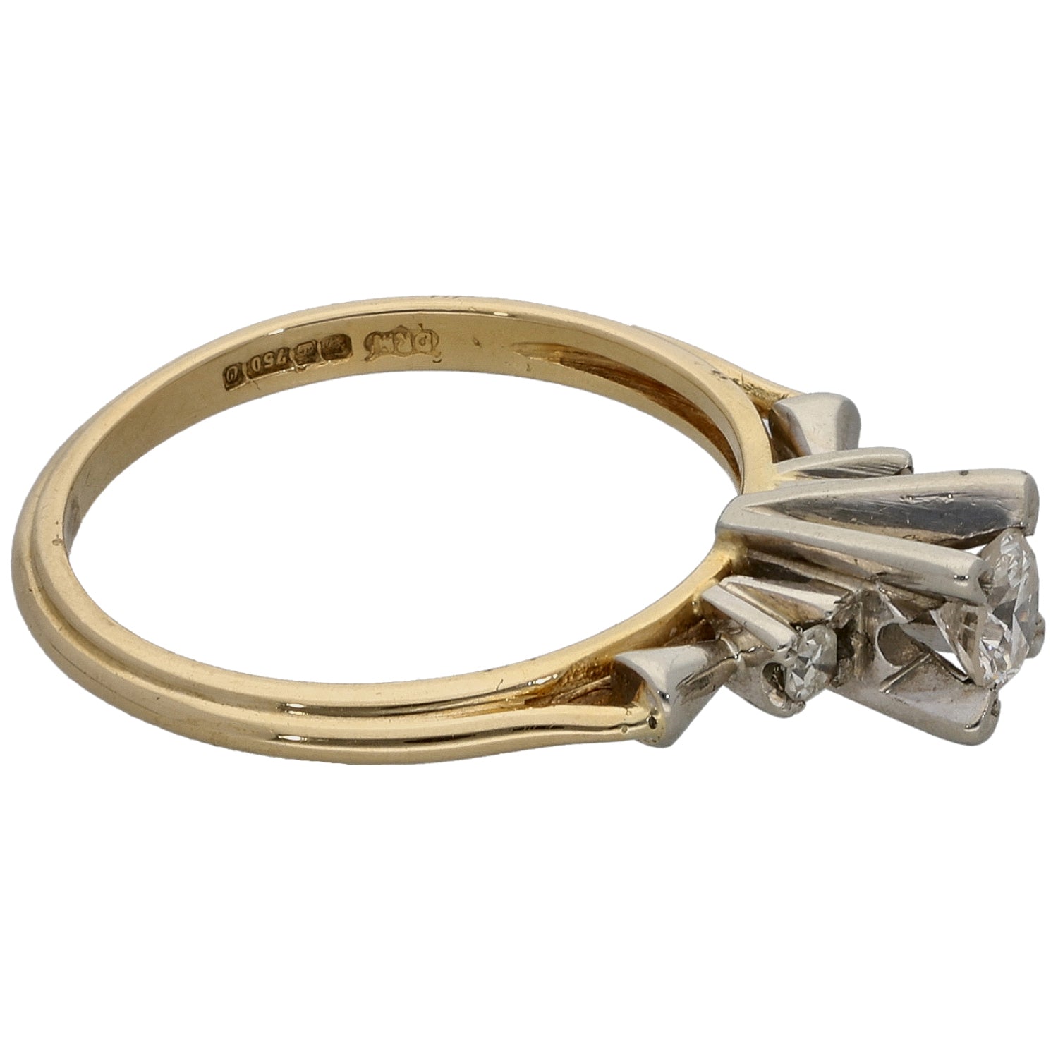18ct Bi-Colour Gold 0.31ct Diamond Solitaire Ring With Accent Stones Size L