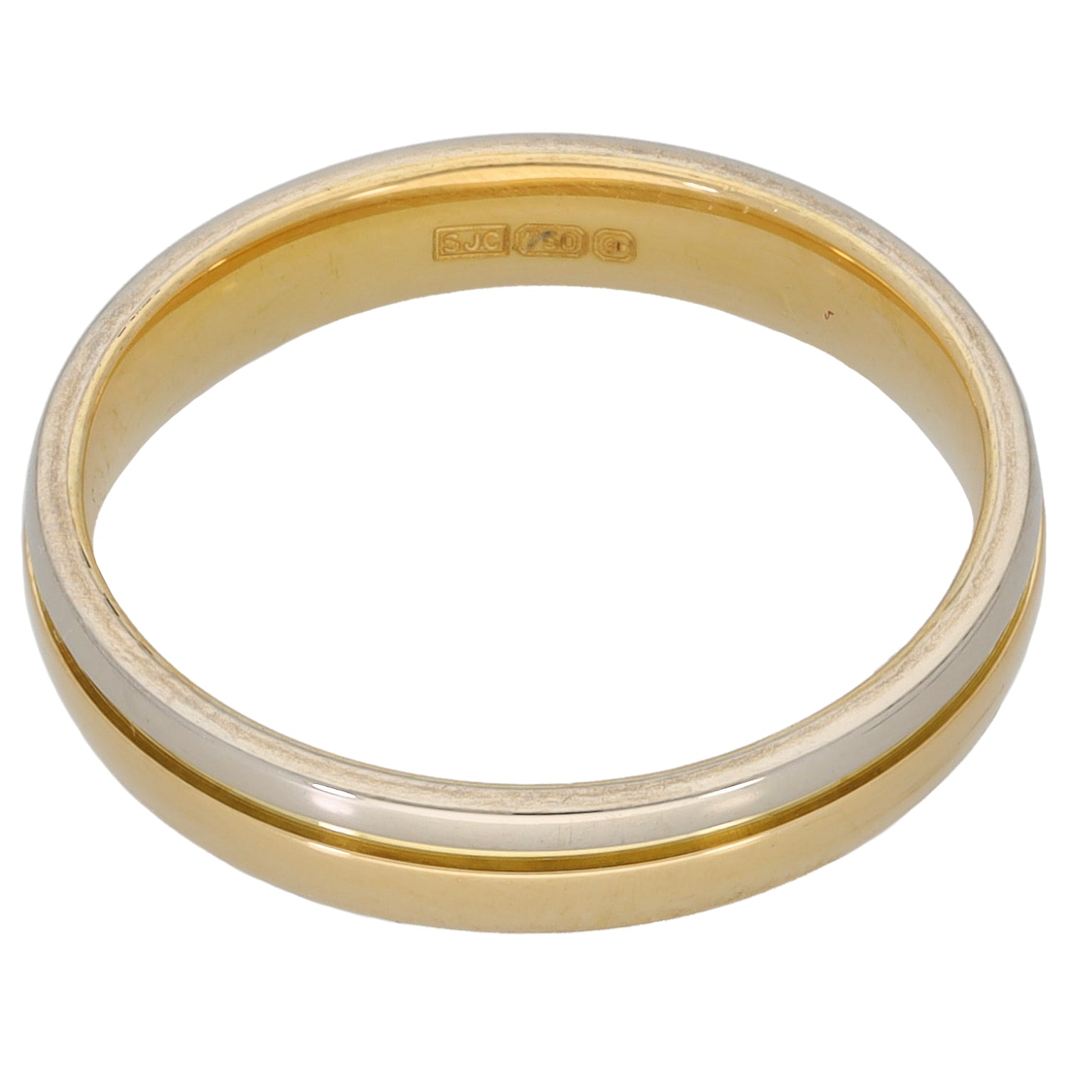 18ct Bicolour Gold Patterned Wedding Ring Size L