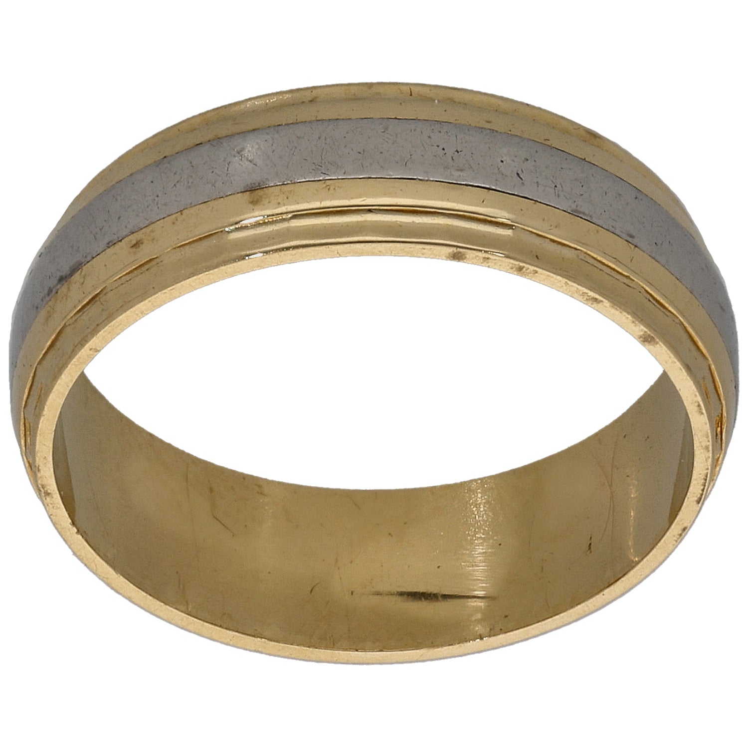 18ct Bicolour Gold Patterned Wedding Ring Size L