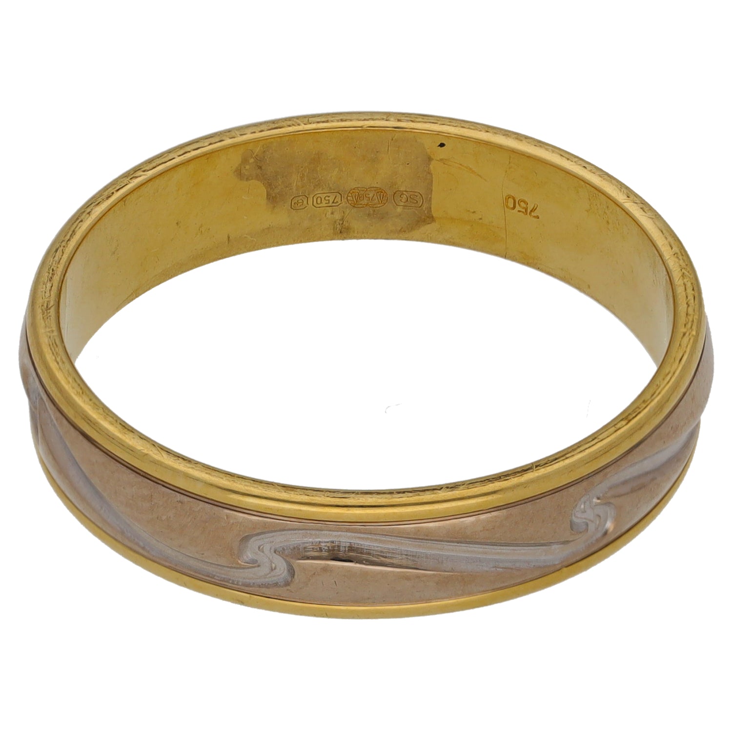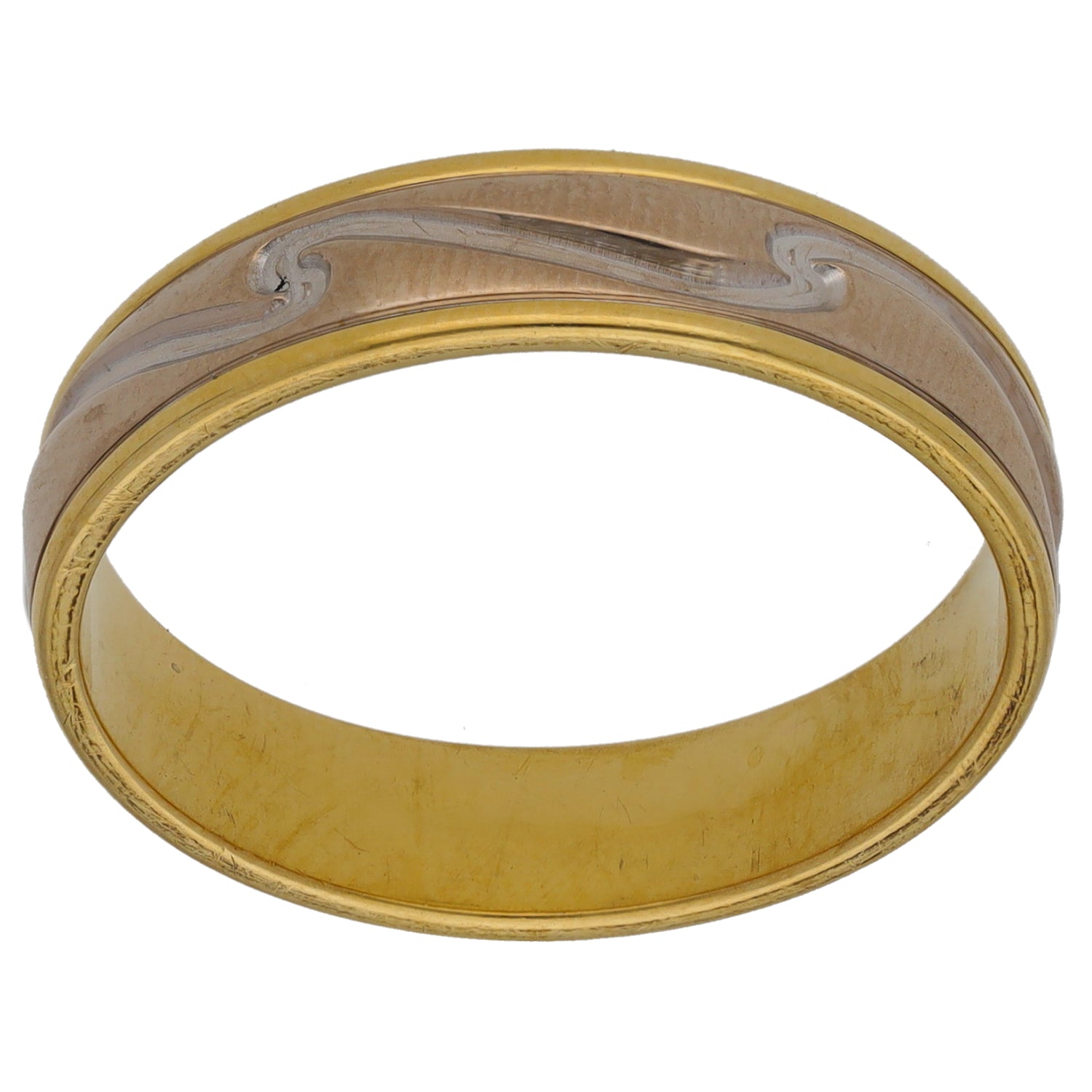 18ct Bi-Colour Gold Patterned Wedding Ring Size S