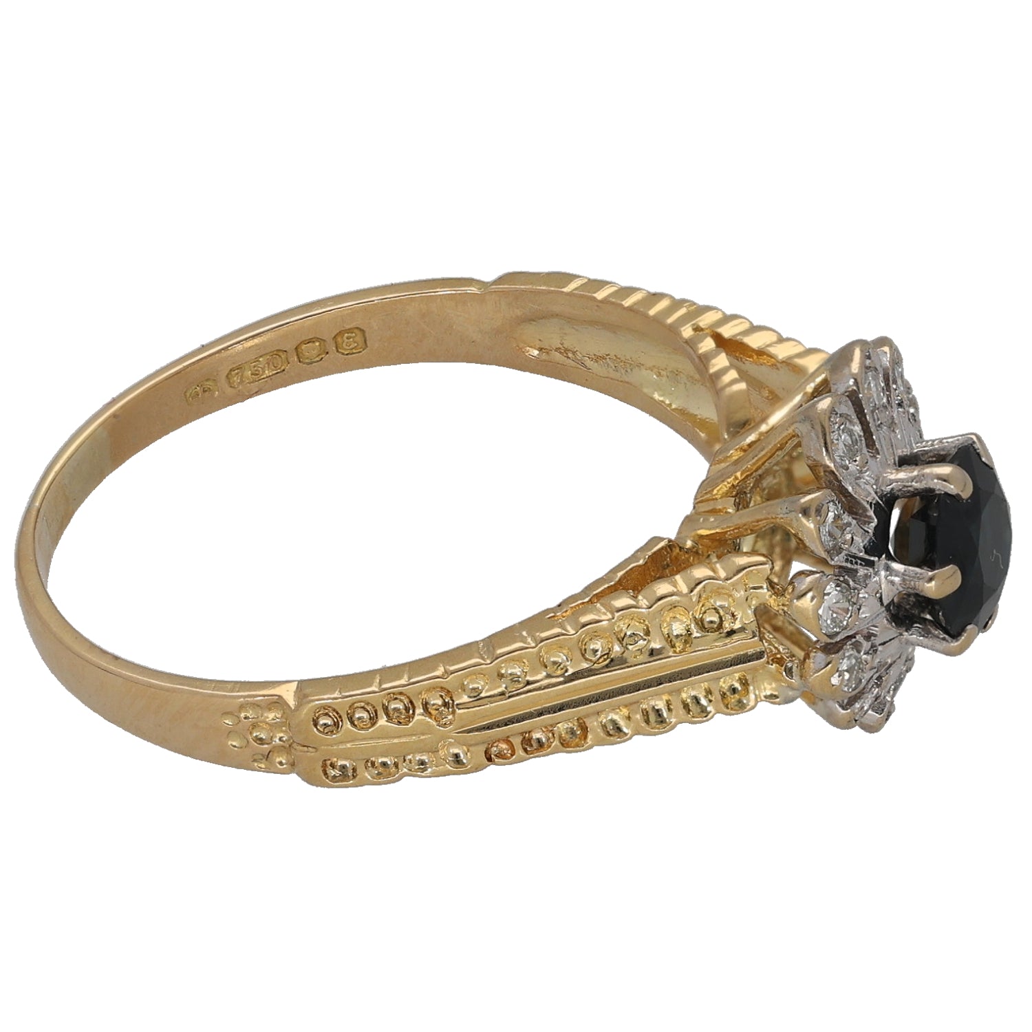 18ct Bicolour Gold Sapphire & 0.06ct Diamond Dress/Cocktail Ring Size P