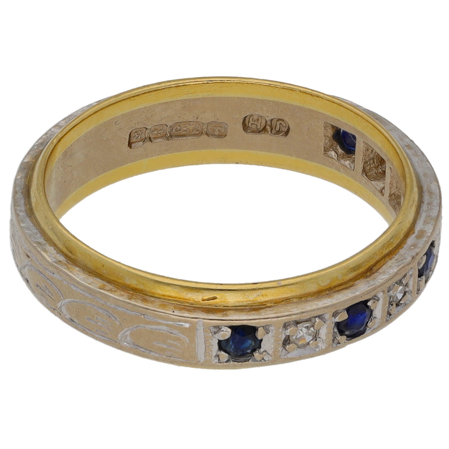18ct Bicolour Gold 0.04ct Diamond & Sapphire Half Eternity Ring Size L
