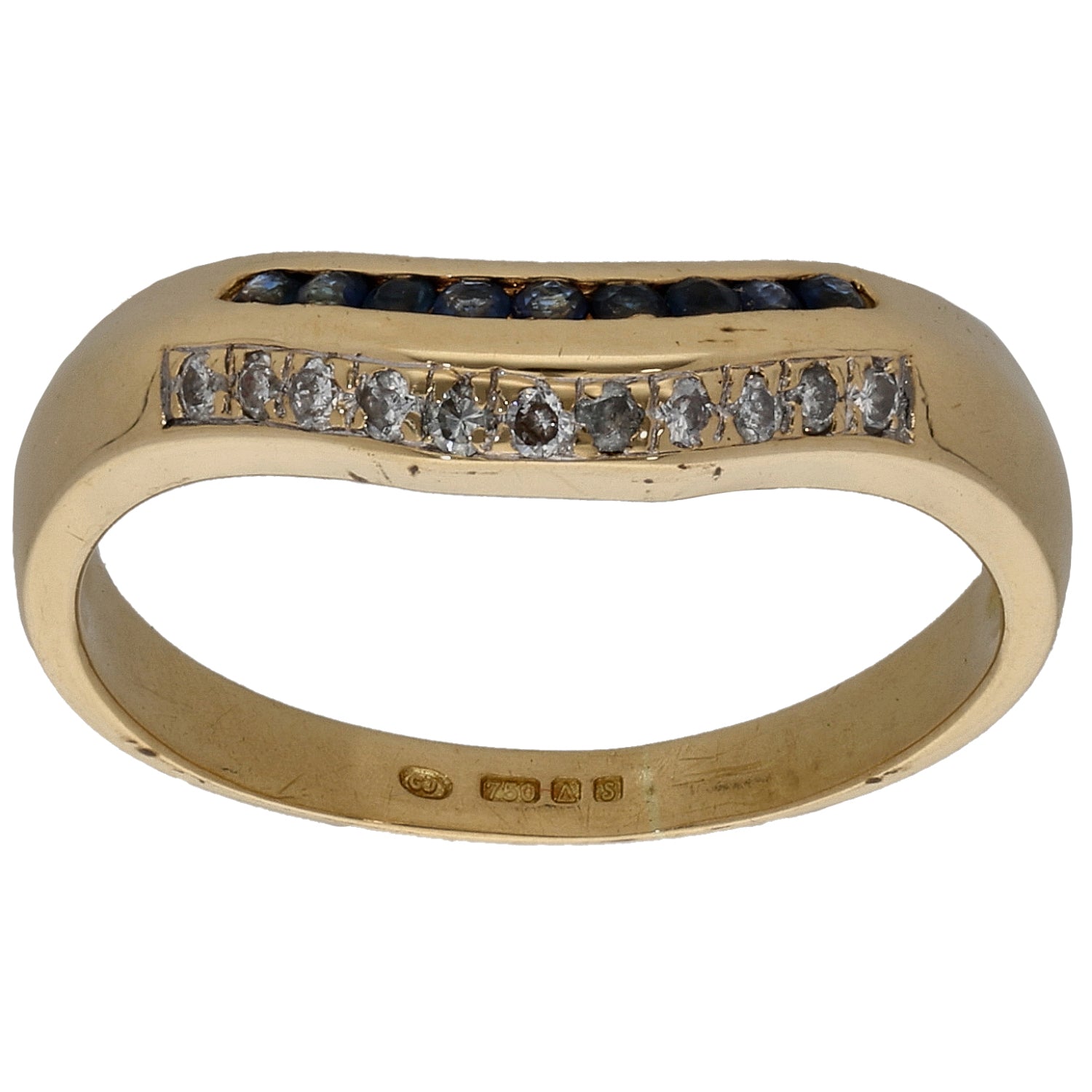 18ct Gold 0.11ct Diamond & Sapphire Half Eternity Ring Size M