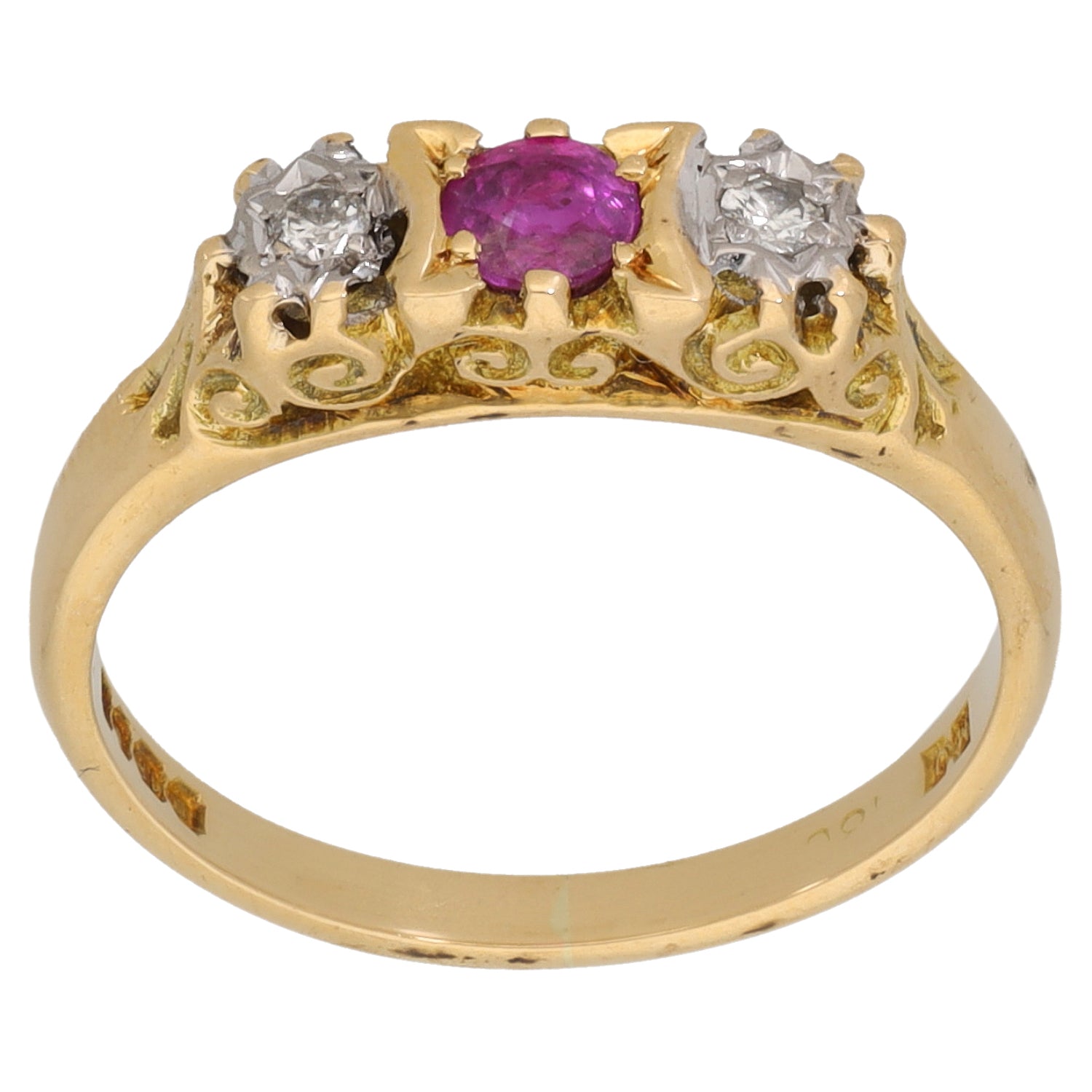 18ct Gold 0.04ct Diamond & Ruby Trilogy Ring Size L