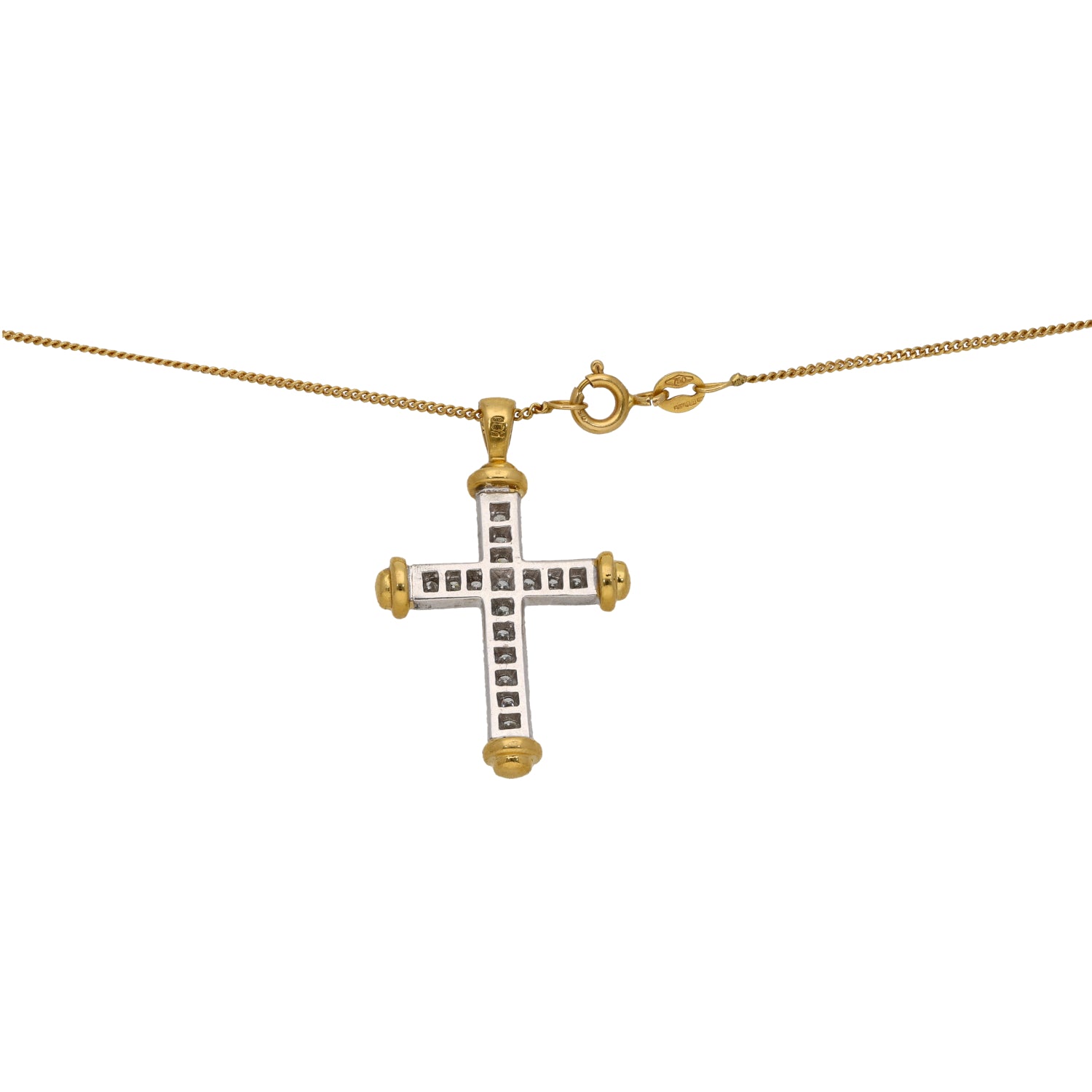 18ct Gold 0.48ct Diamond Cross Pendant With Chain