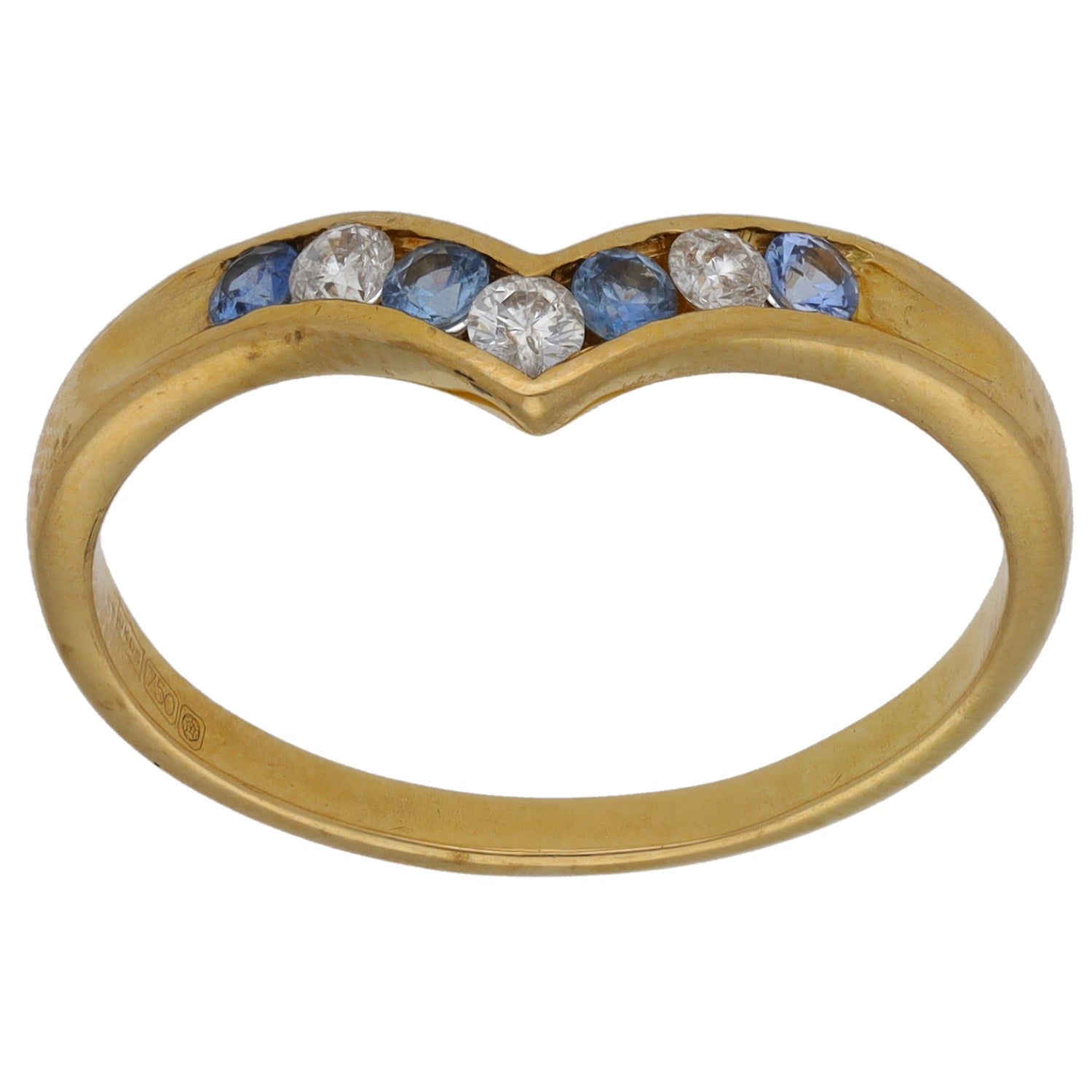 18ct Gold 0.12ct Diamond & Aquamarine Wishbone Ring Size R