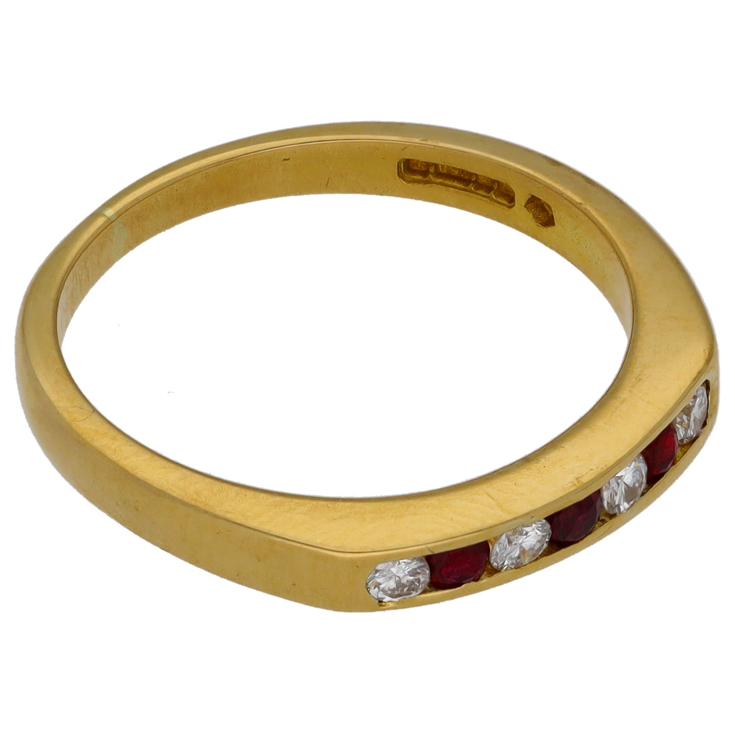 18ct Gold 0.16ct Diamond & Ruby Half Eternity Ring Size N