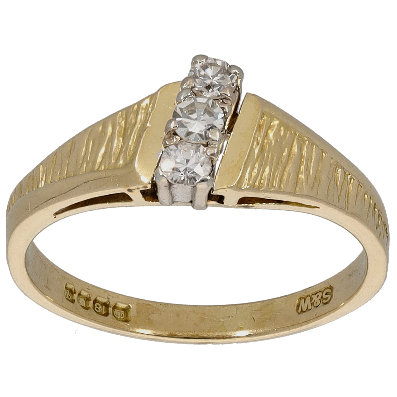 18ct Gold 0.15ct Diamond Three Stone Ring Size N