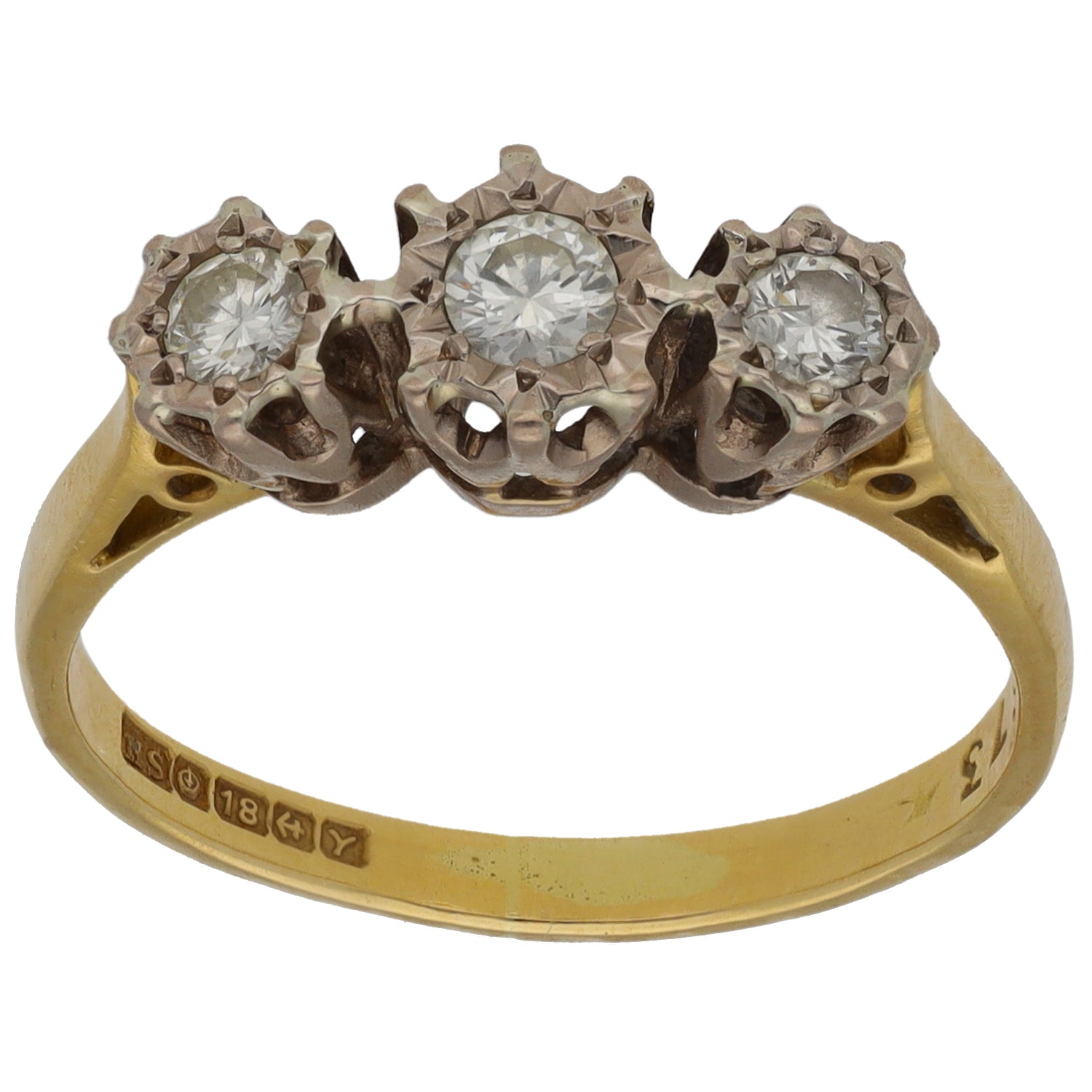 18ct Gold 0.35ct Diamond Trilogy Ring Size O