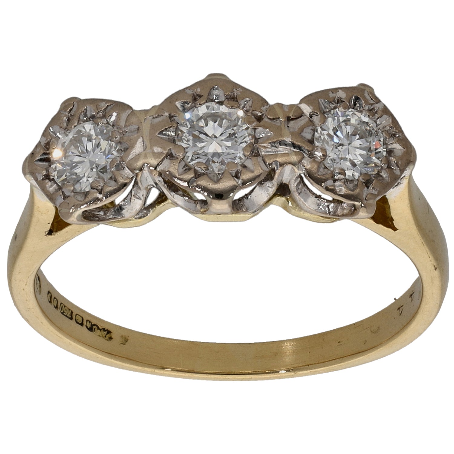 18ct Gold 0.44ct Diamond Trilogy Ring Size N