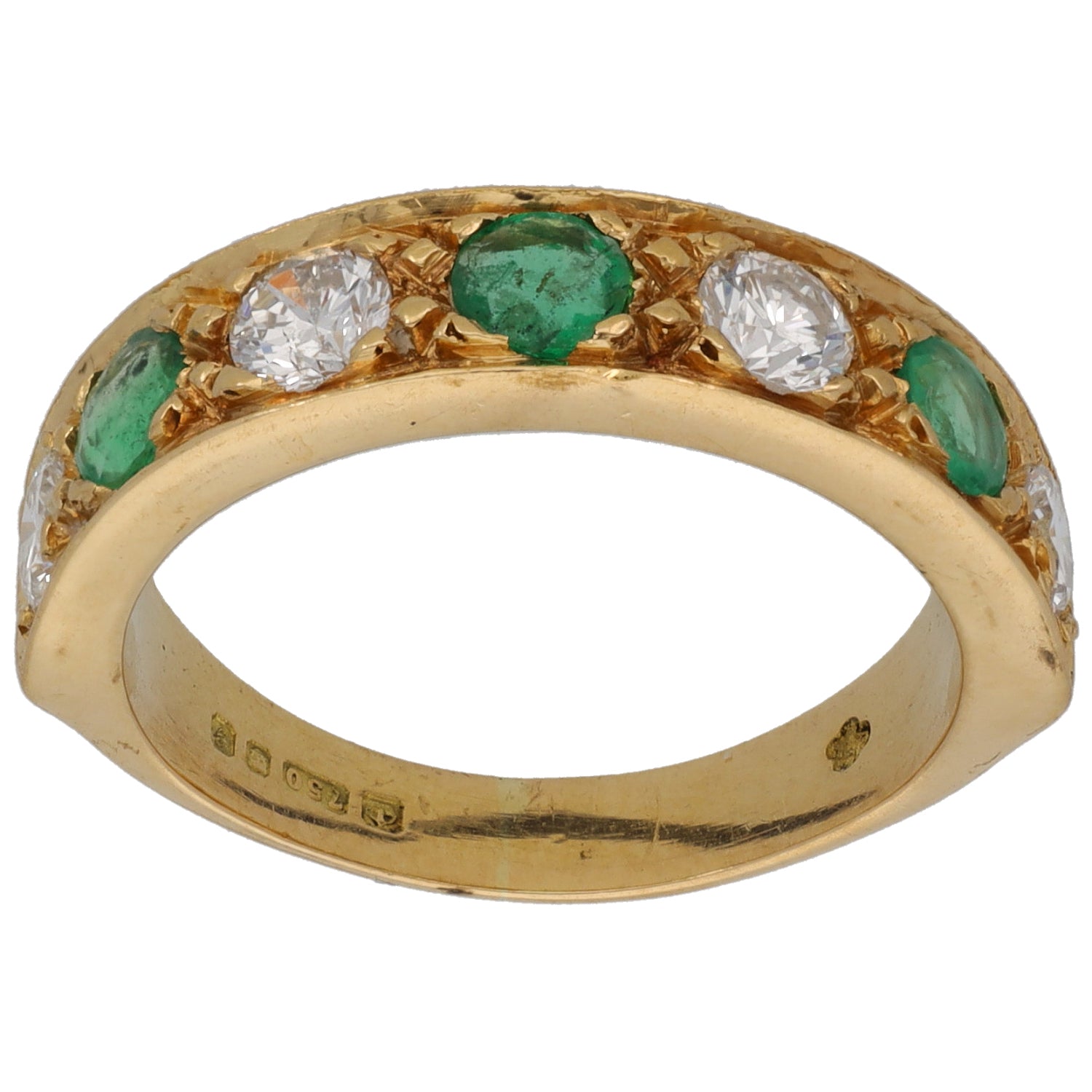 18ct Gold 0.15ct Diamond & Emerald Half Eternity Ring Size M
