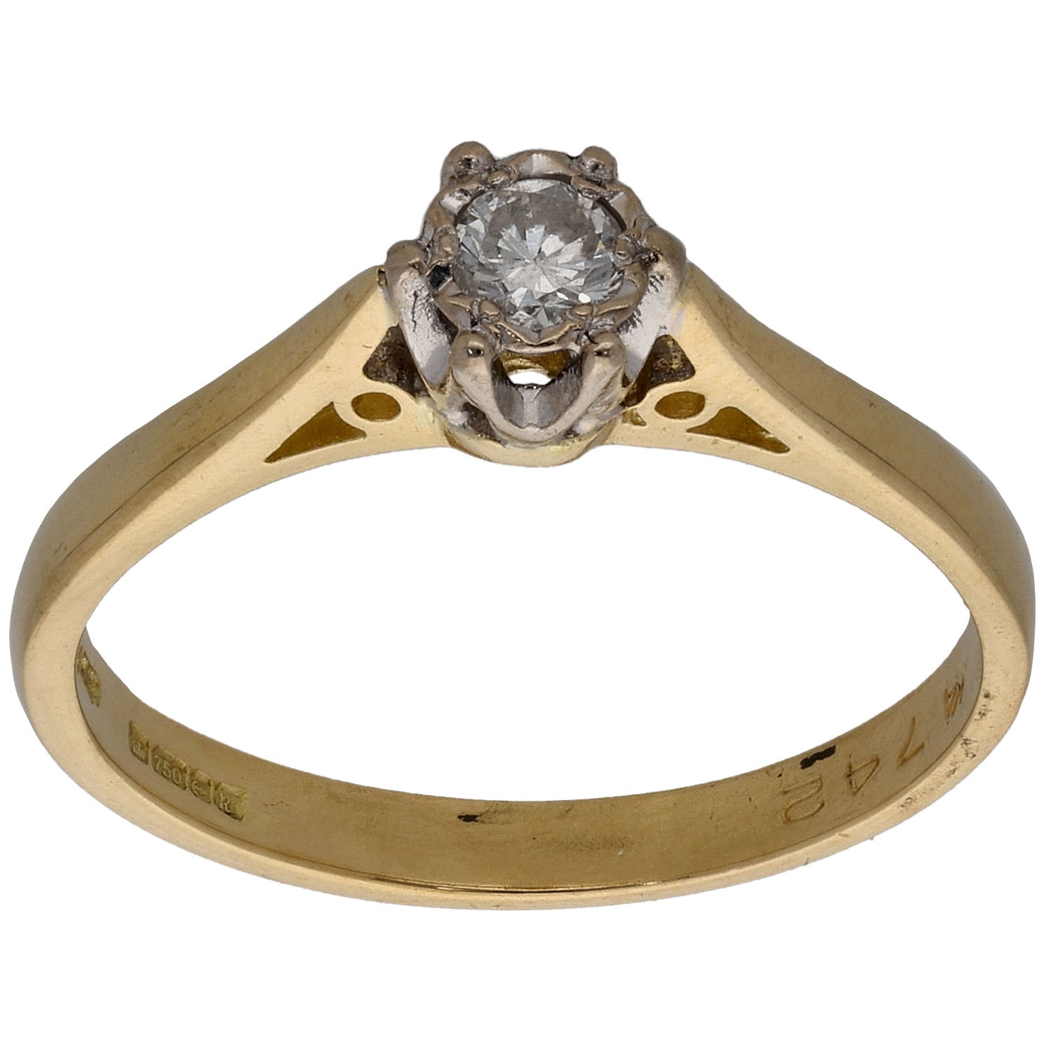 18ct Gold 0.15ct Diamond Solitaire Ring Size O