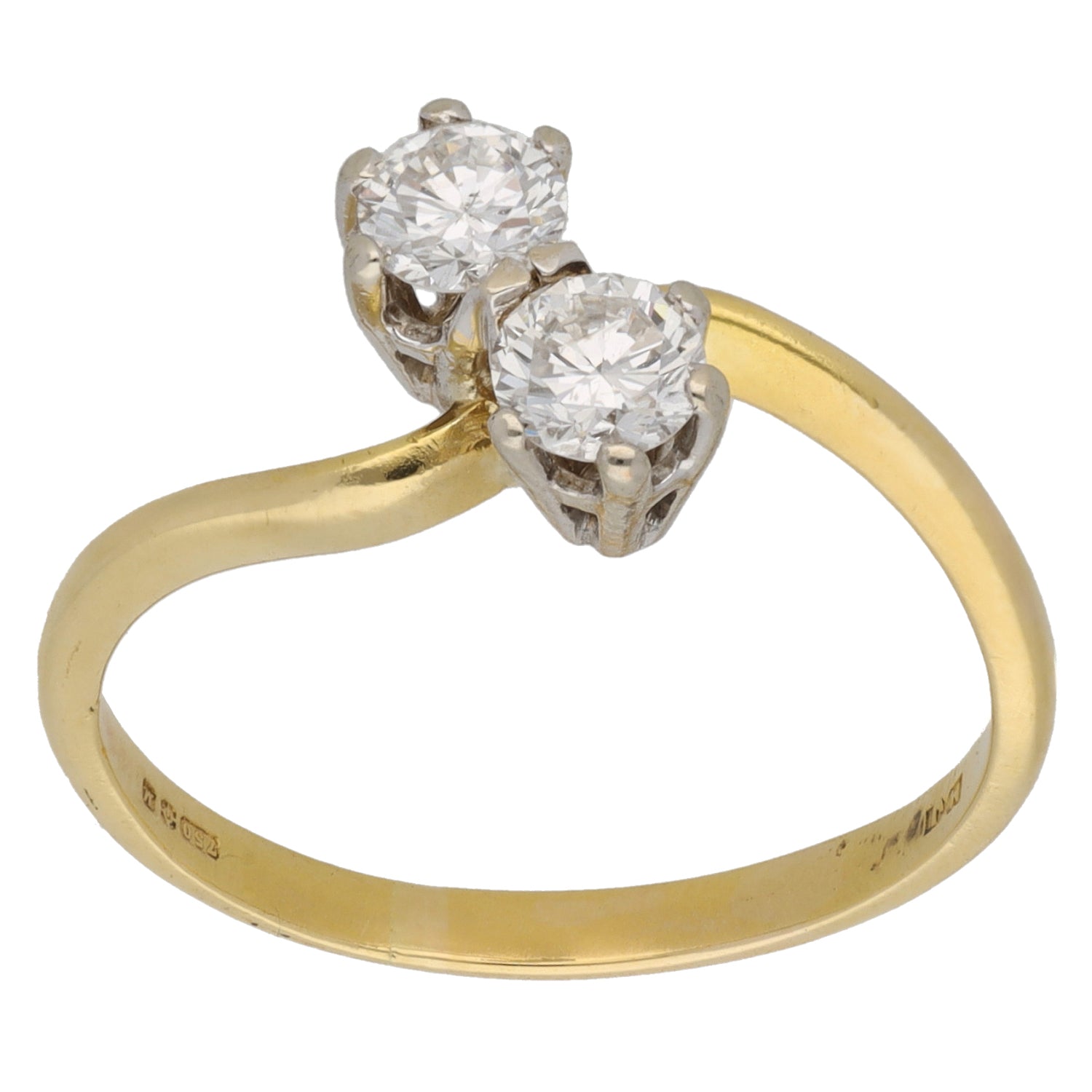 18ct Gold 0.60ct Diamond Two Stone Ring Size R
