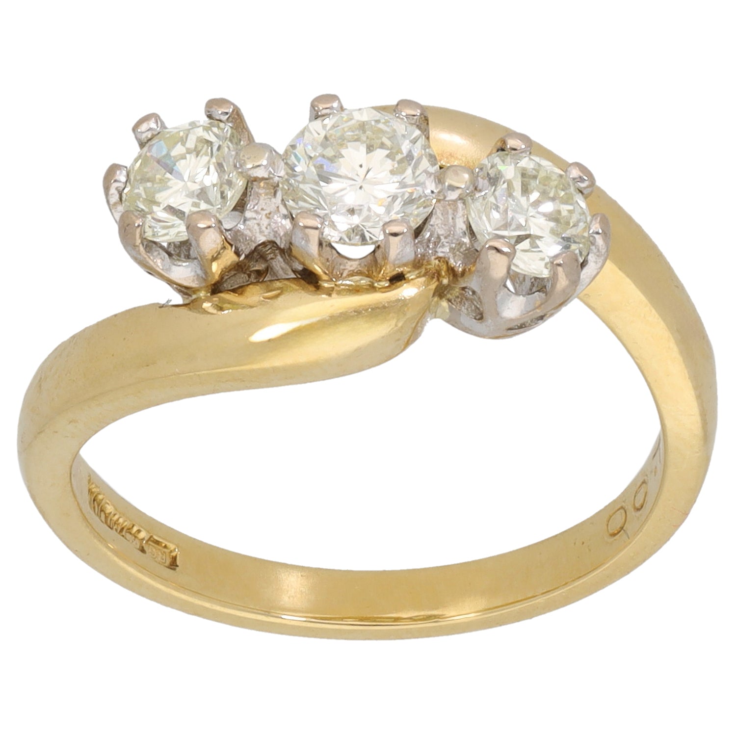 18ct Gold 1.00ct Diamond Trilogy Ring Size N