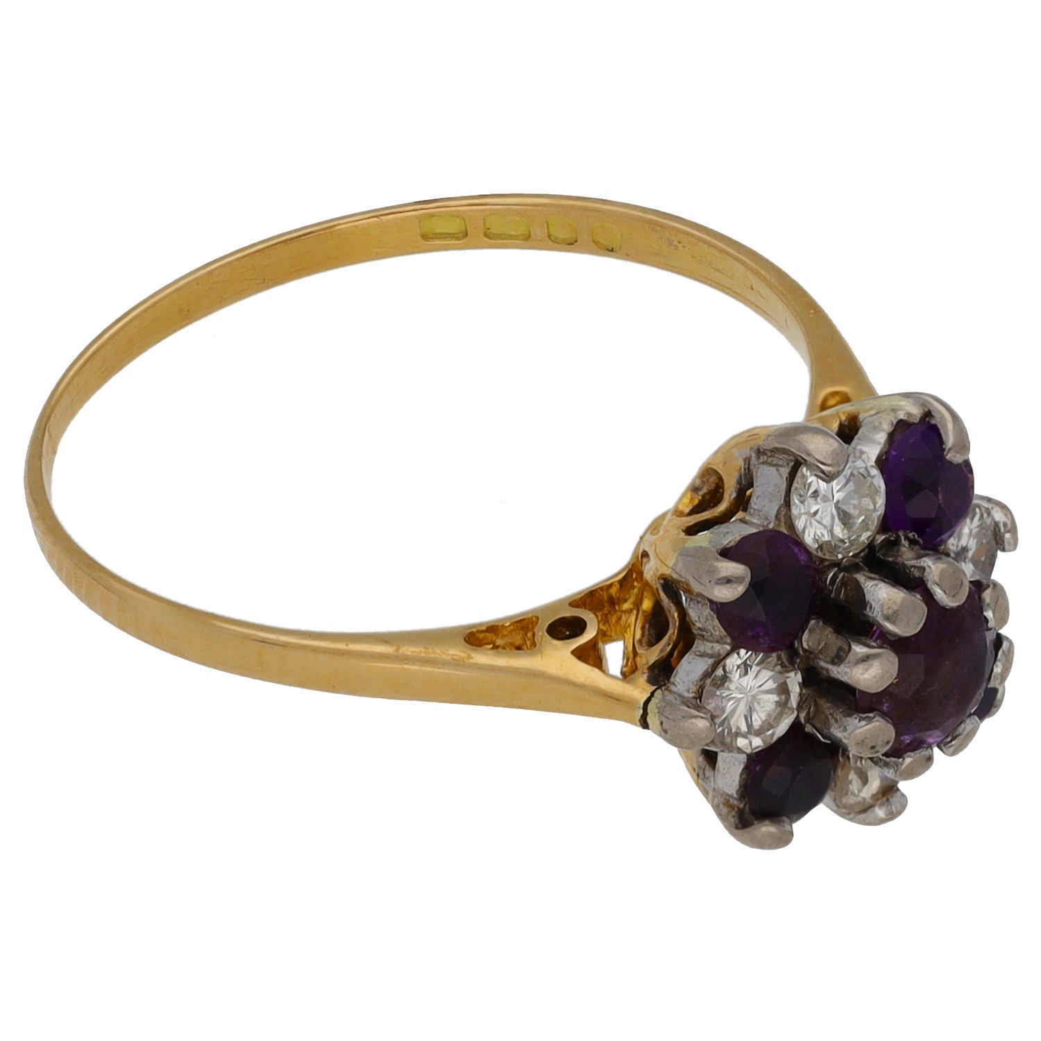 18ct Gold 0.12ct Diamond & Amethyst Dress/Cocktail Ring Size K