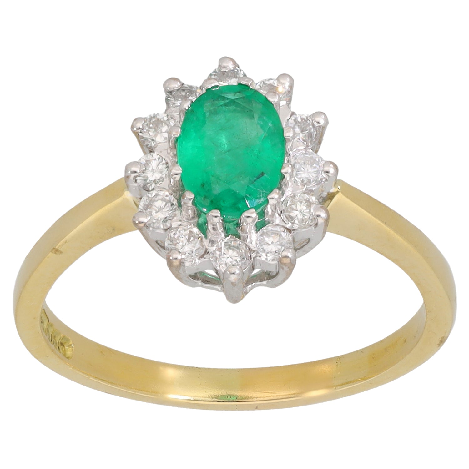 18ct Gold Emerald & 0.36ct Diamond Dress/Cocktail Ring Size R