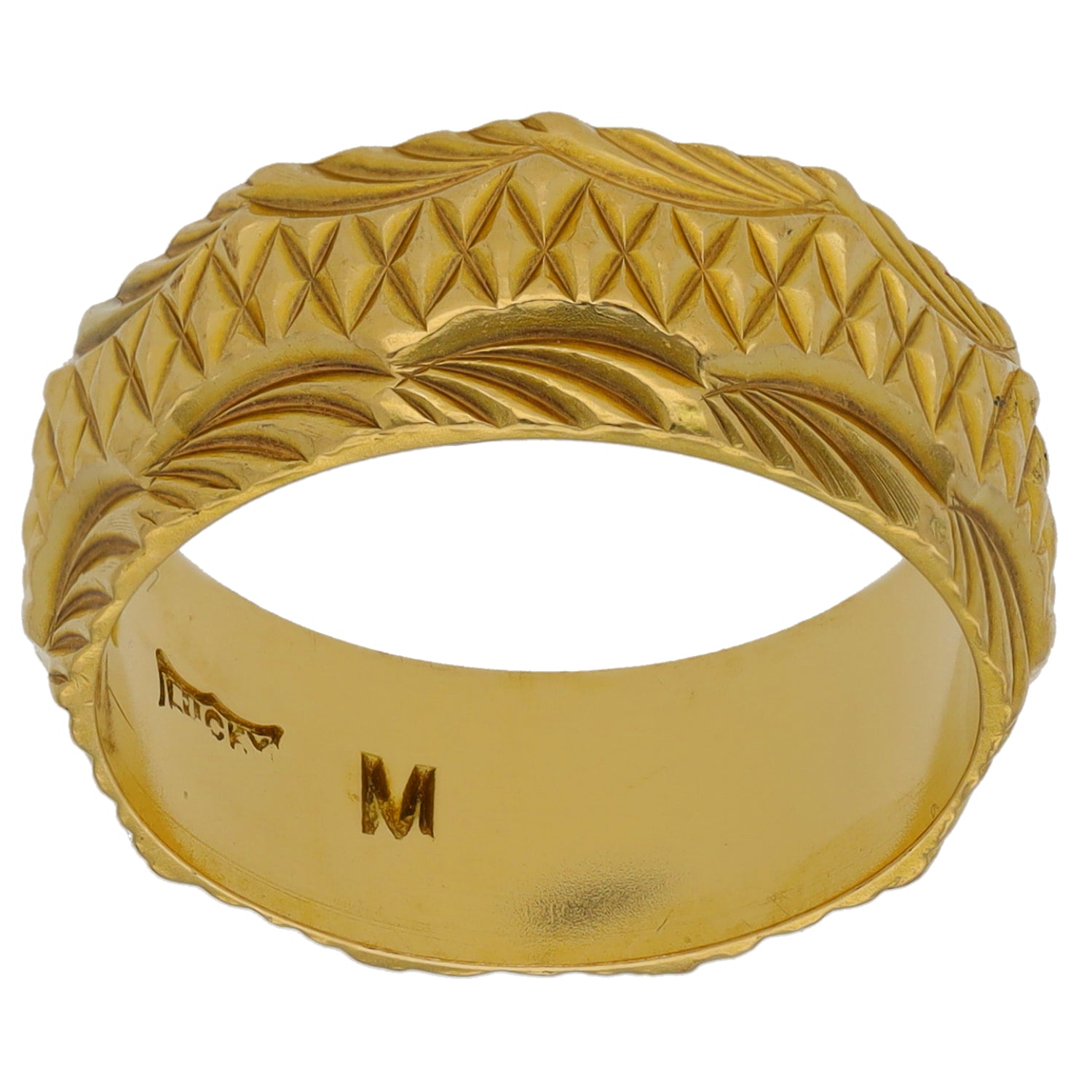 18ct Gold Patterned Wedding Ring Size M