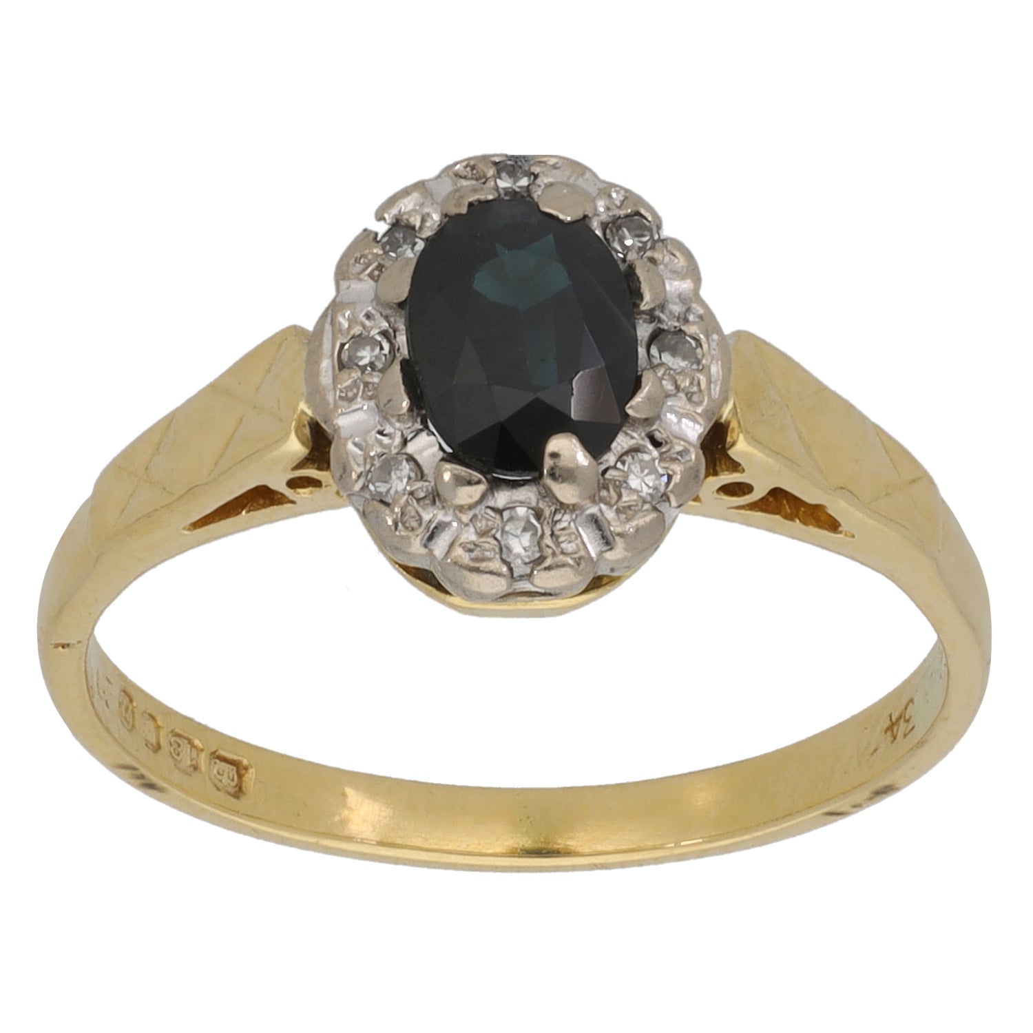 18ct Gold Sapphire & 0.04ct Diamond Dress/Cocktail Ring Size N