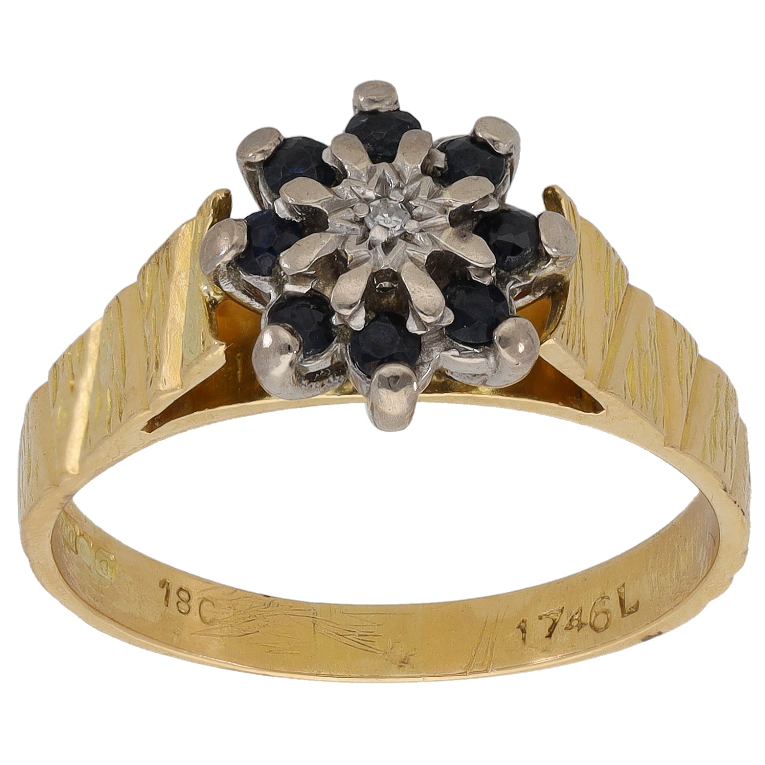 18ct Gold Sapphire & 0.01ct Diamond Dress/Cocktail Ring Size Q