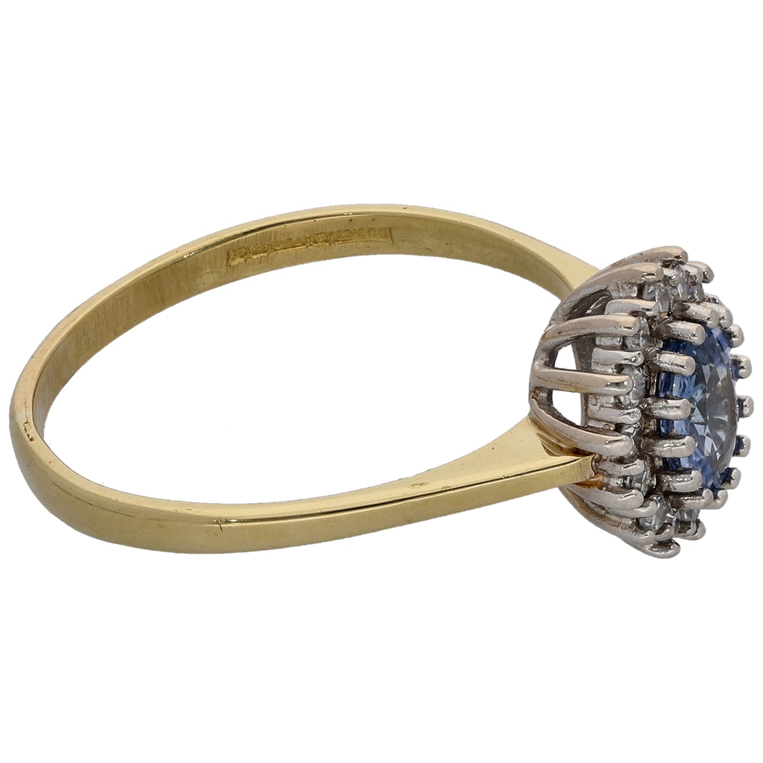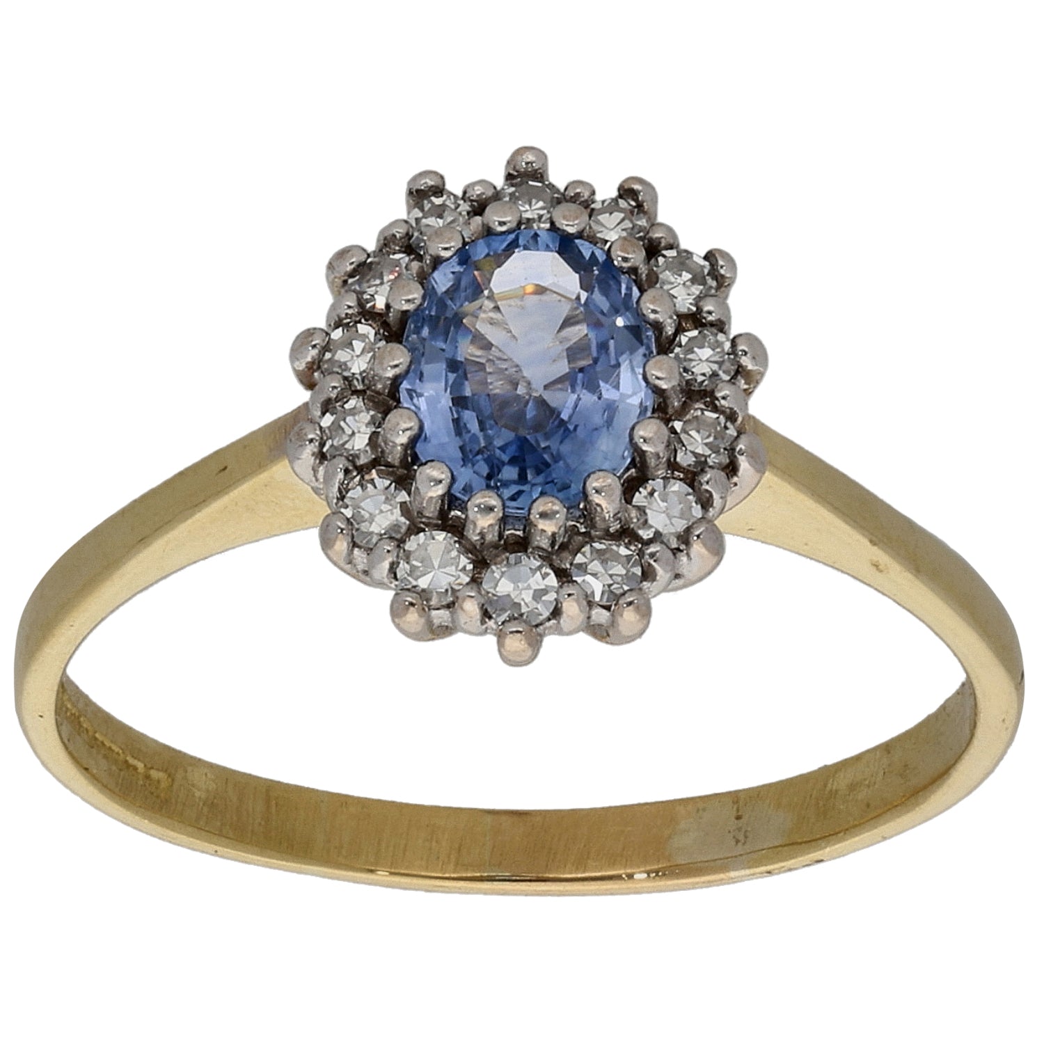 18ct Gold Sapphire & 0.14ct Diamond Cluster Ring Size Q