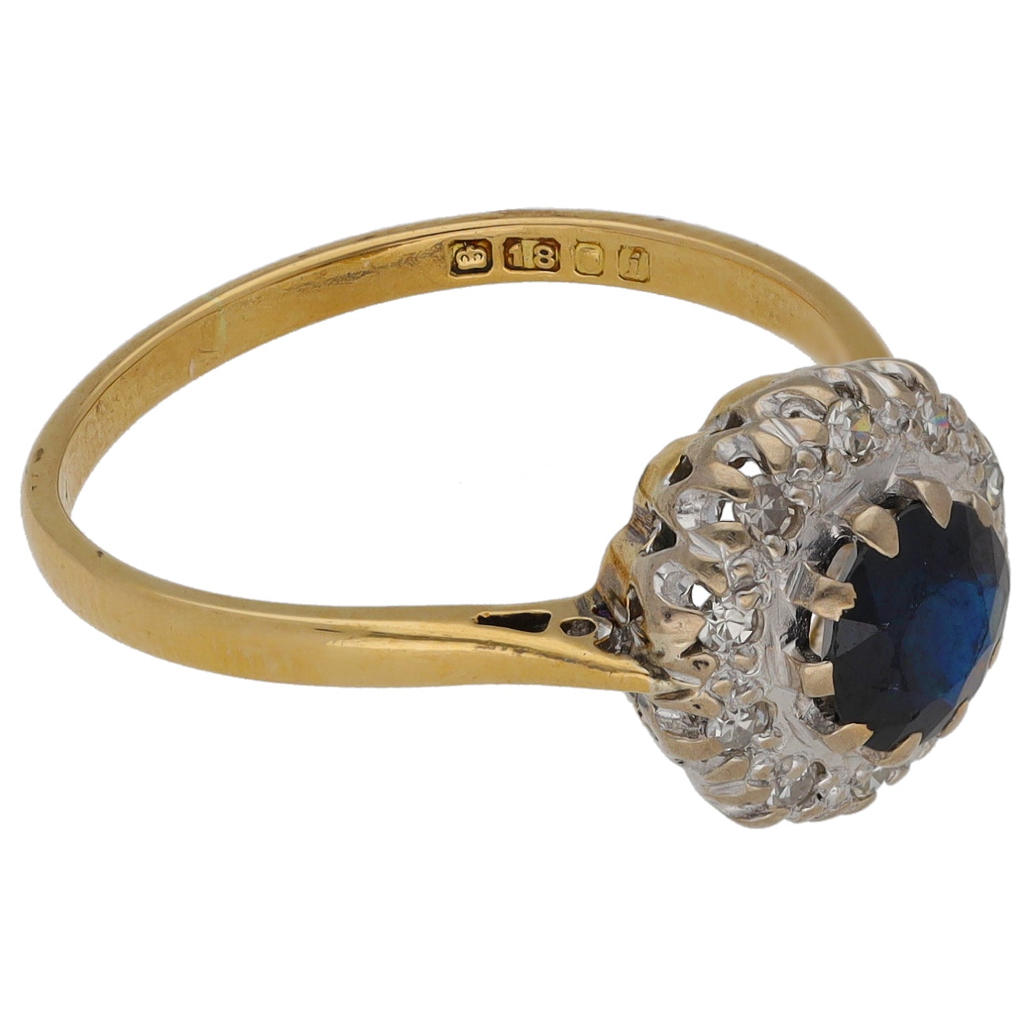 18ct Gold Sapphire & 0.05ct Round Diamond Solitaire Ring With Accent Stones Size L