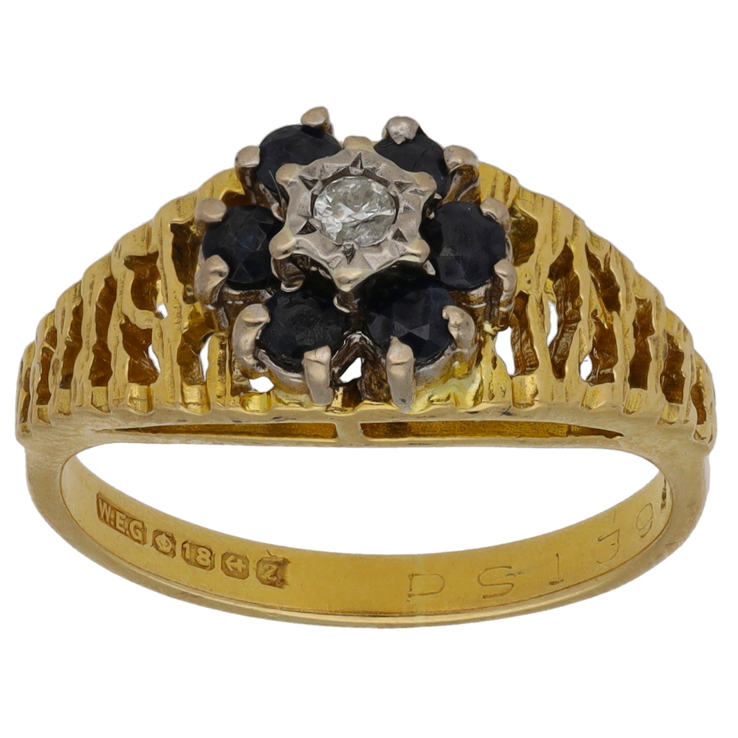 18ct Gold Sapphire & 0.04ct Diamond Dress/Cocktail Ring Size L