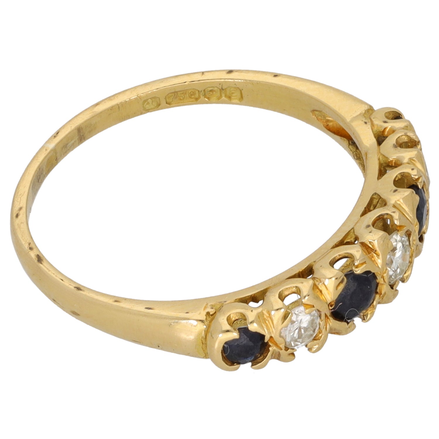 18ct Gold Sapphire & 0.17ct Diamond Half Eternity Ring Size L