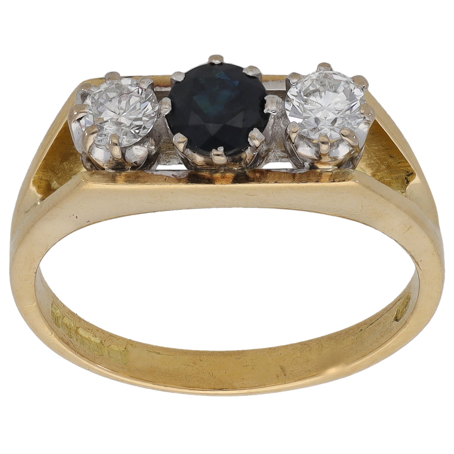 18ct Gold Sapphire & 0.40ct Diamond Three Stone Ring Size M