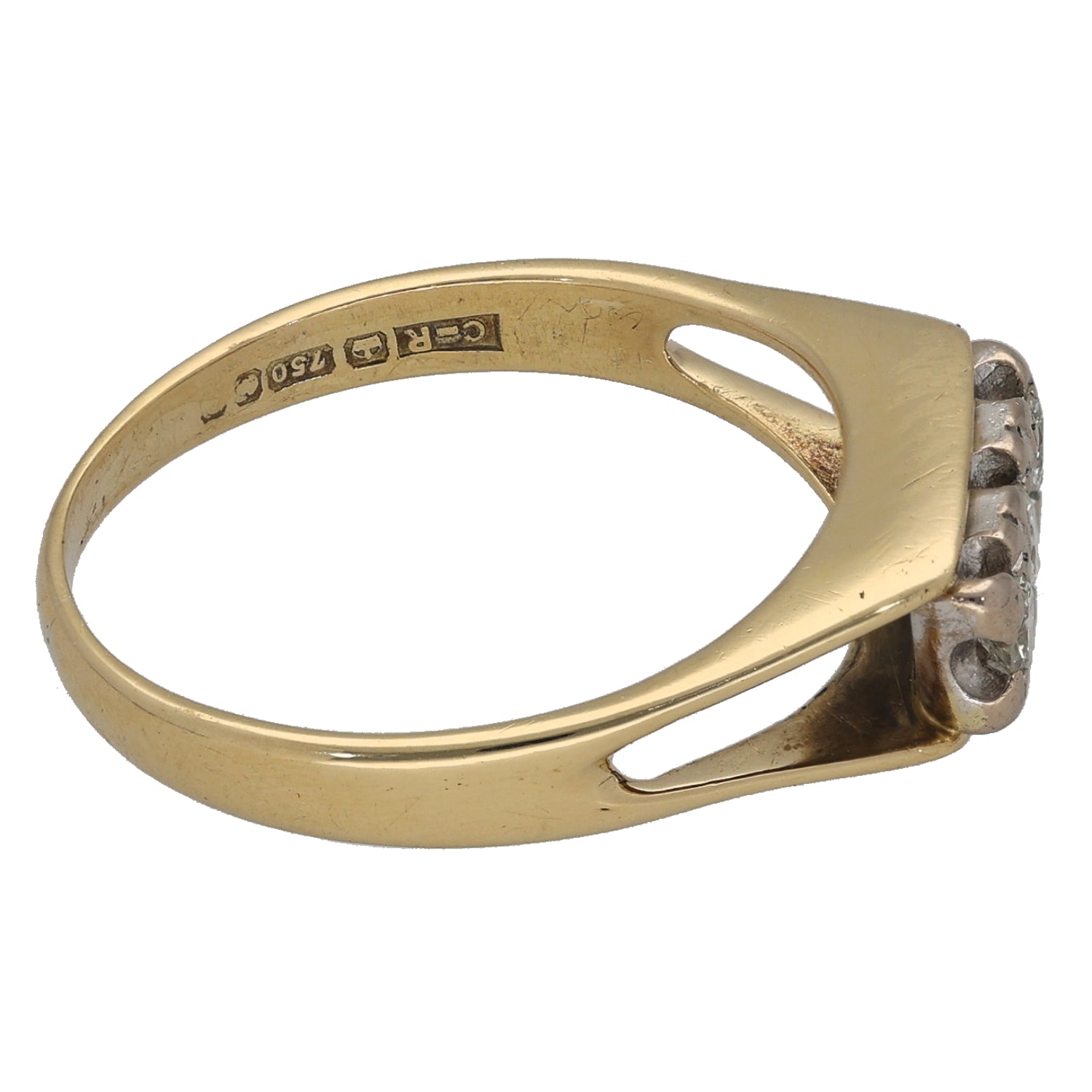 18ct Gold 0.16ct Diamond Three Stone Ring Size O