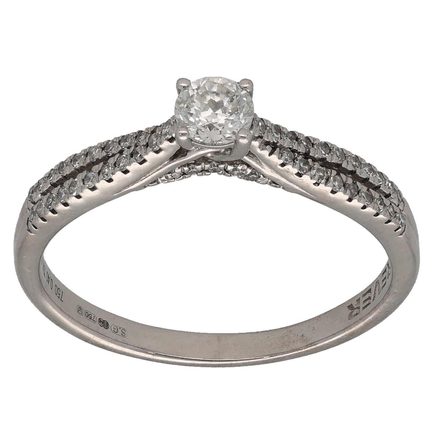 18ct White Gold 0.40ct Diamond Solitaire Ring With Accent Stones Size N
